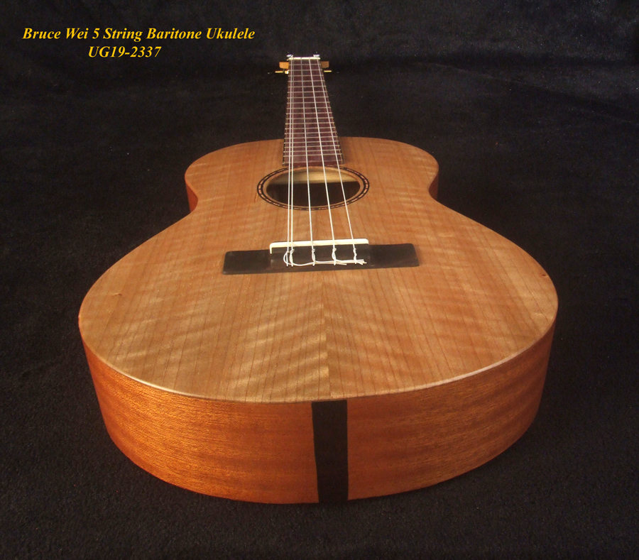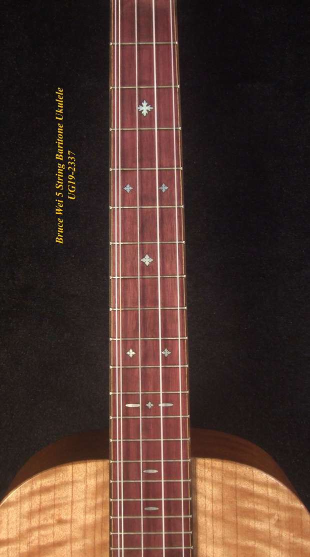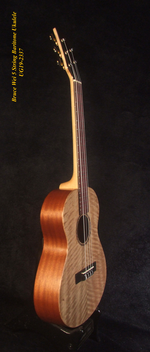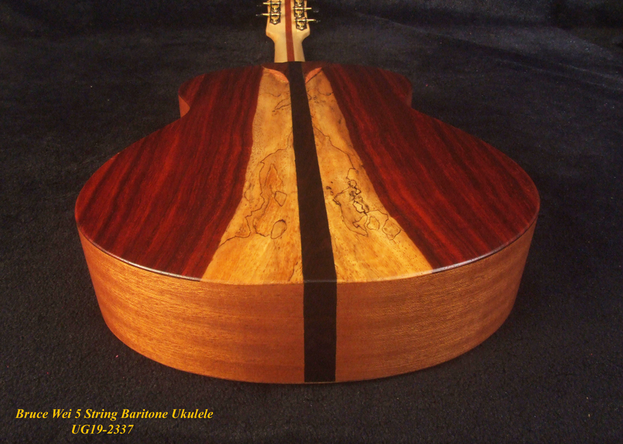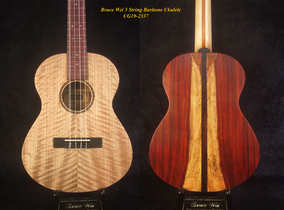 5 String Baritone Ukulele, Solid Curly Maple, Spalted Maple Redwood, Bruce Wei UG19-2337