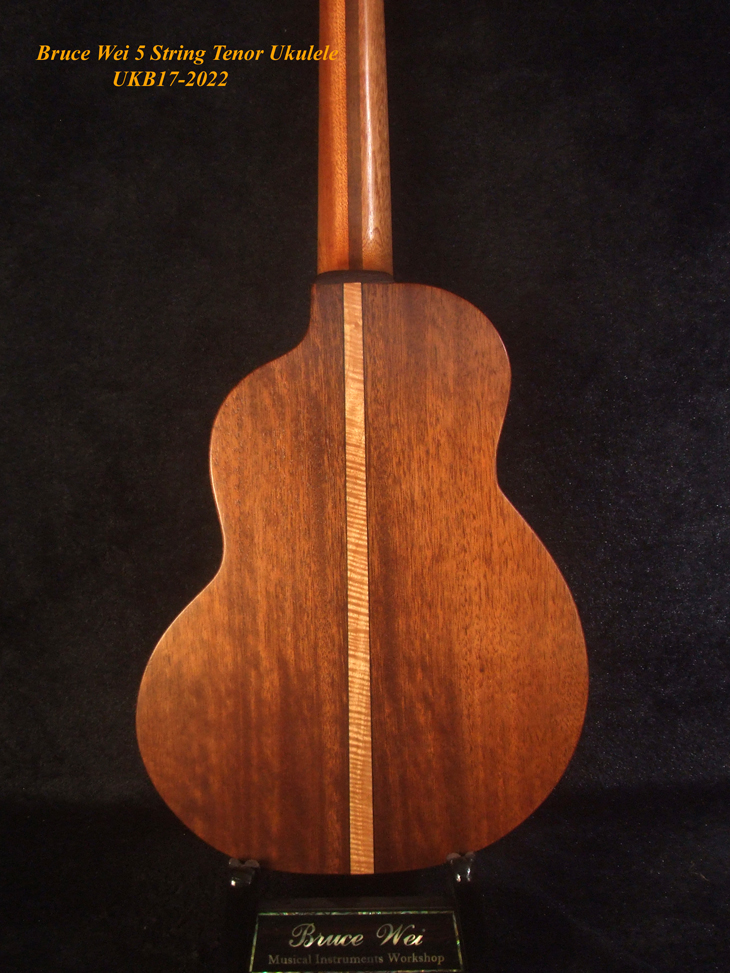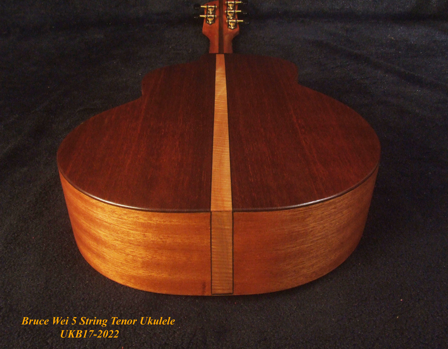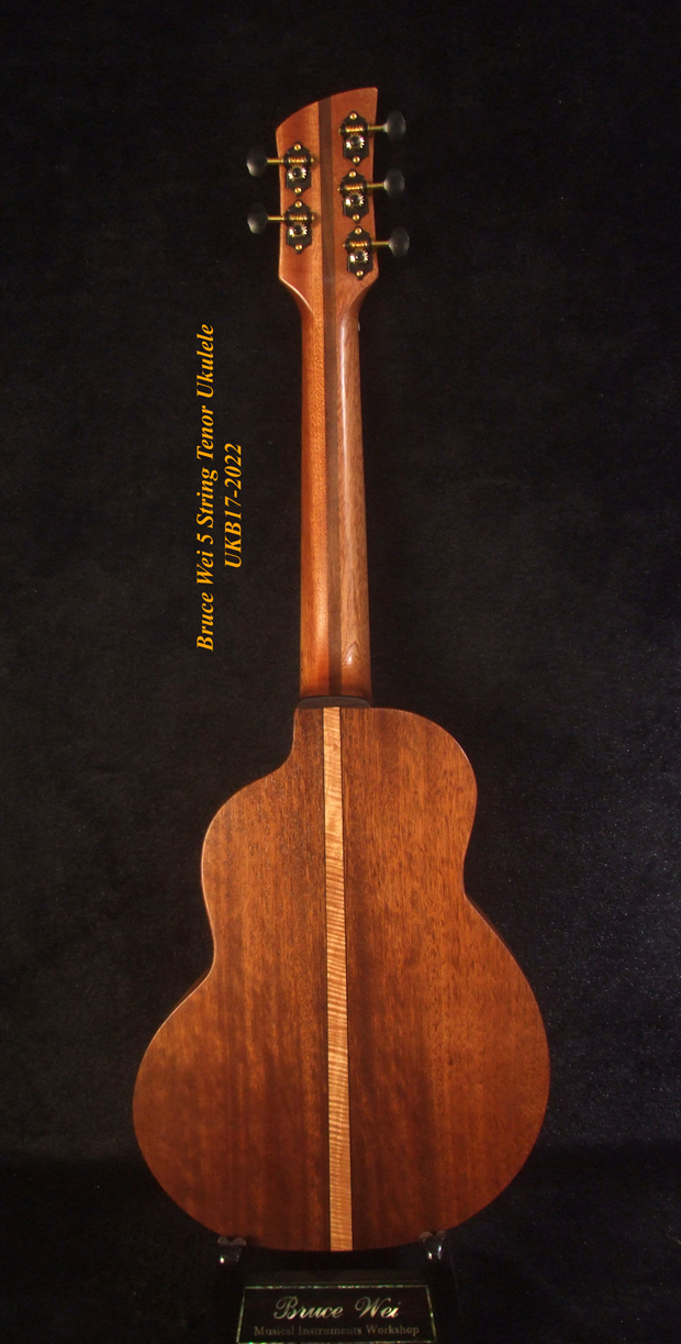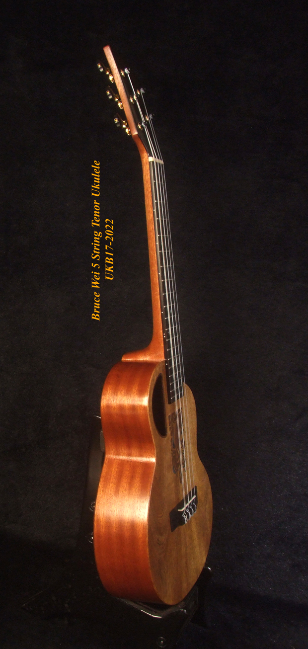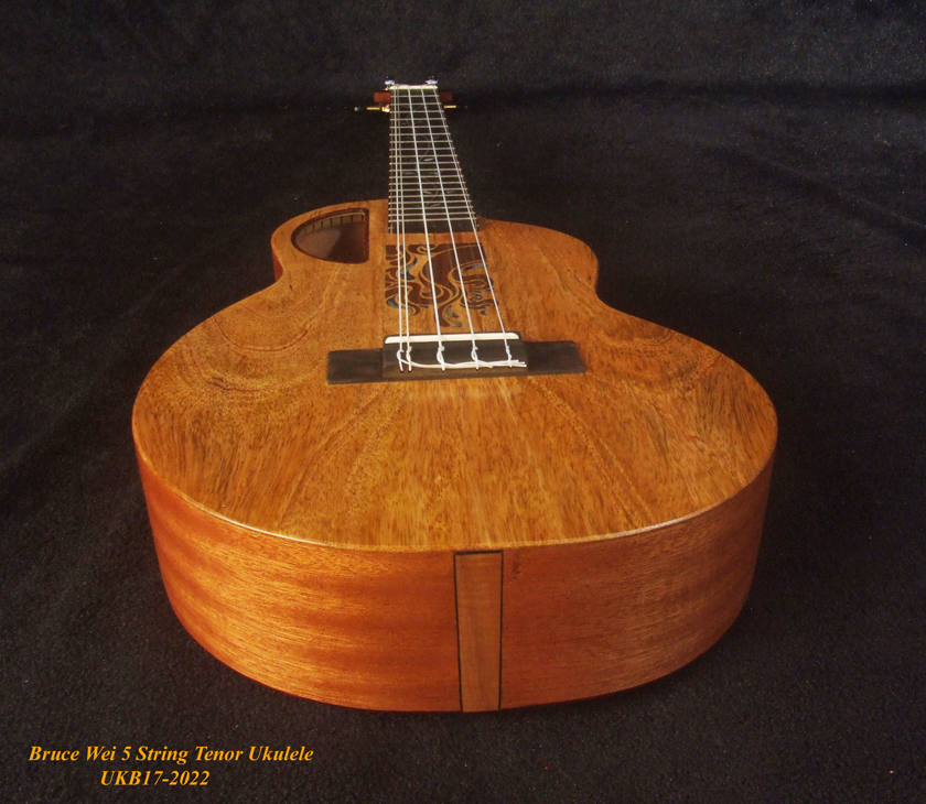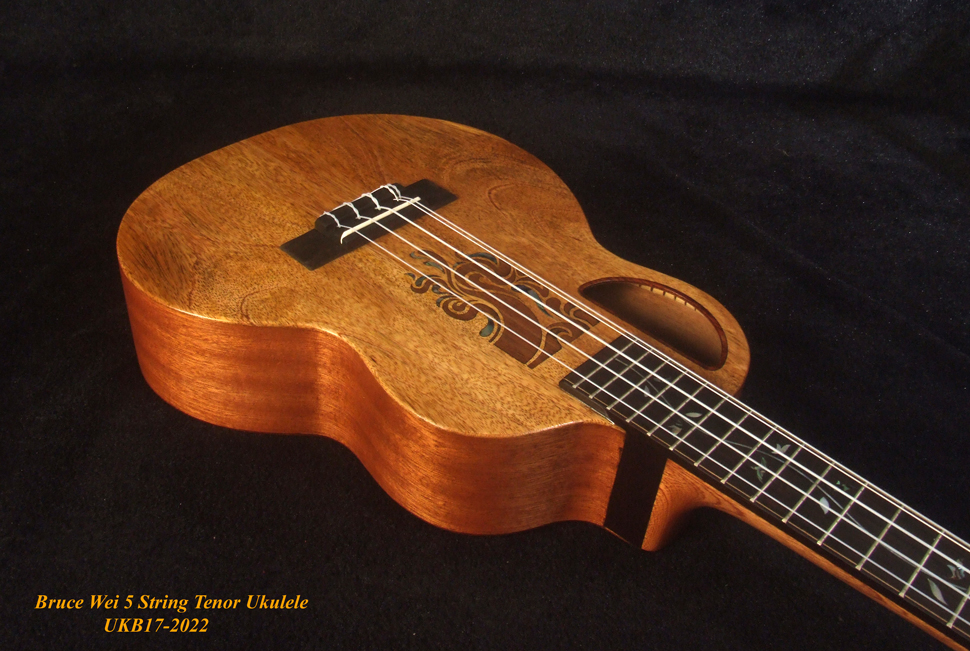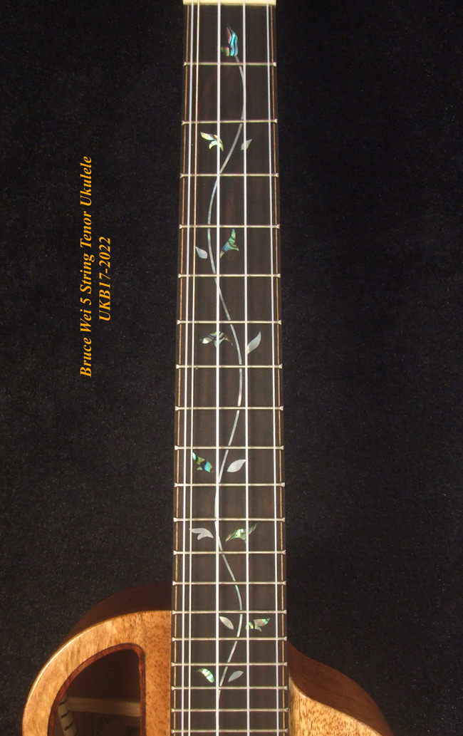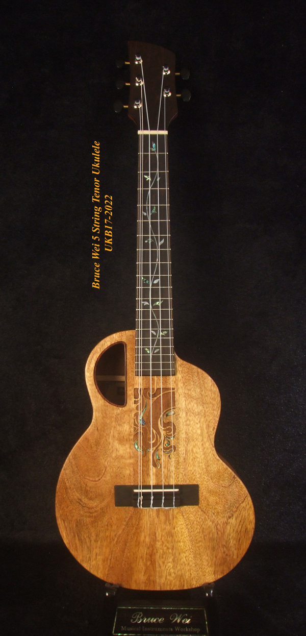 5 String Tenor Ukulele, Handmade Mango & Mahogany, Abalone Vine Inlay, Soft-bag, Bruce Wei UKB17-2022