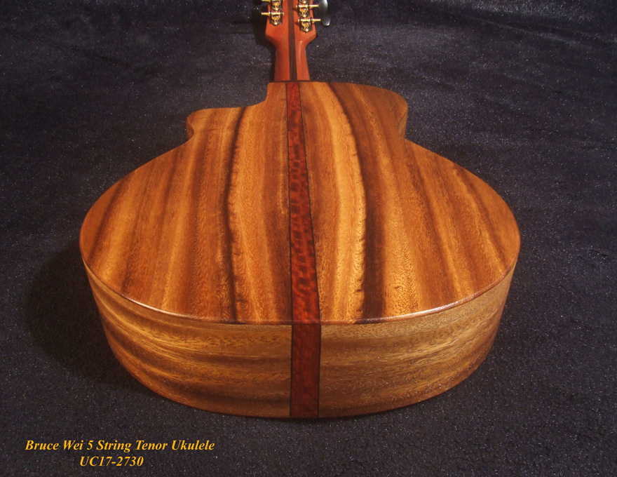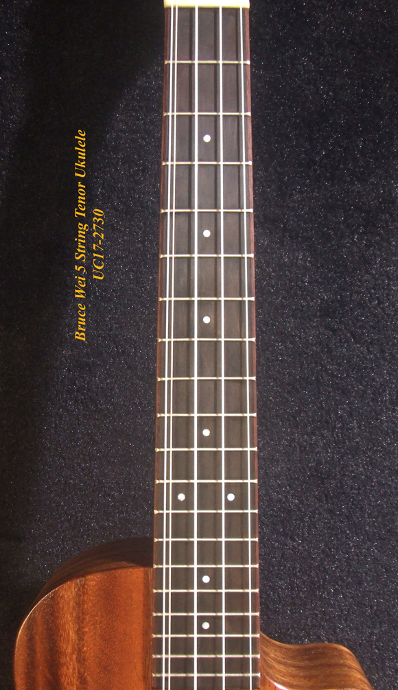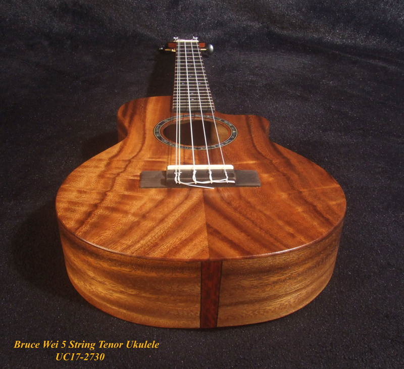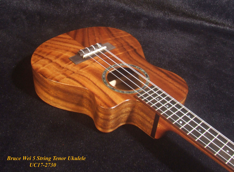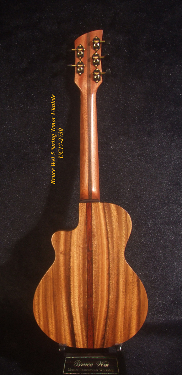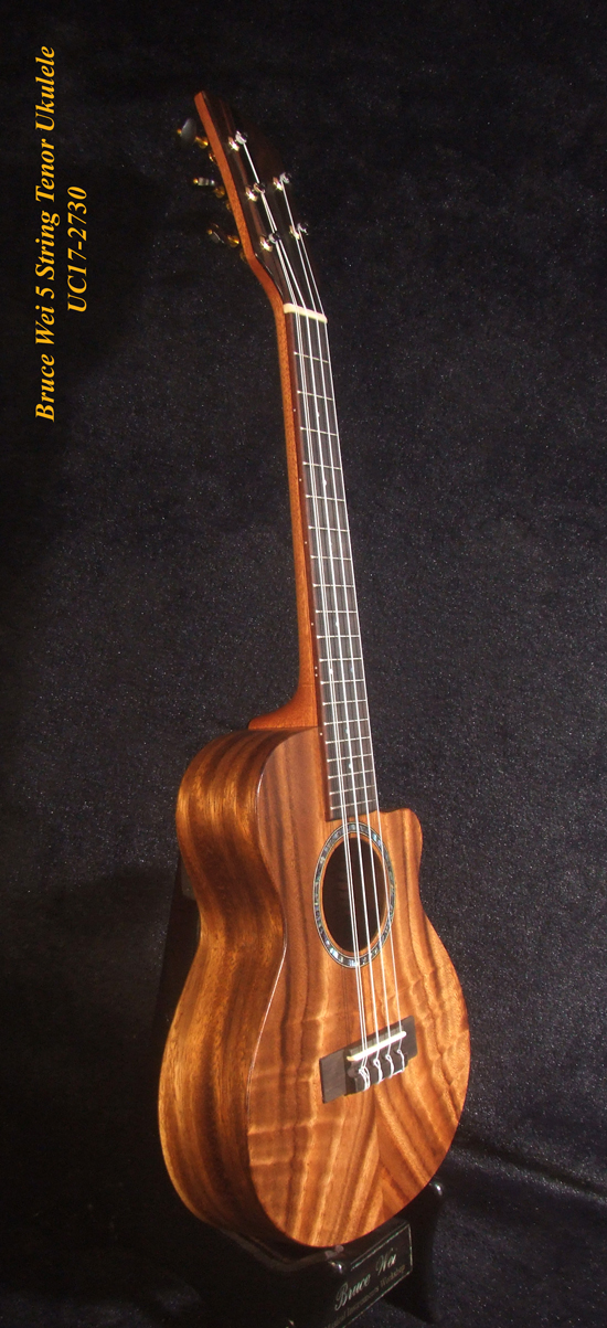 5 String Tenor Ukulele, Handmade Solid Acacia, Cutaway, Soft-bag, Bruce Wei UC17-2730