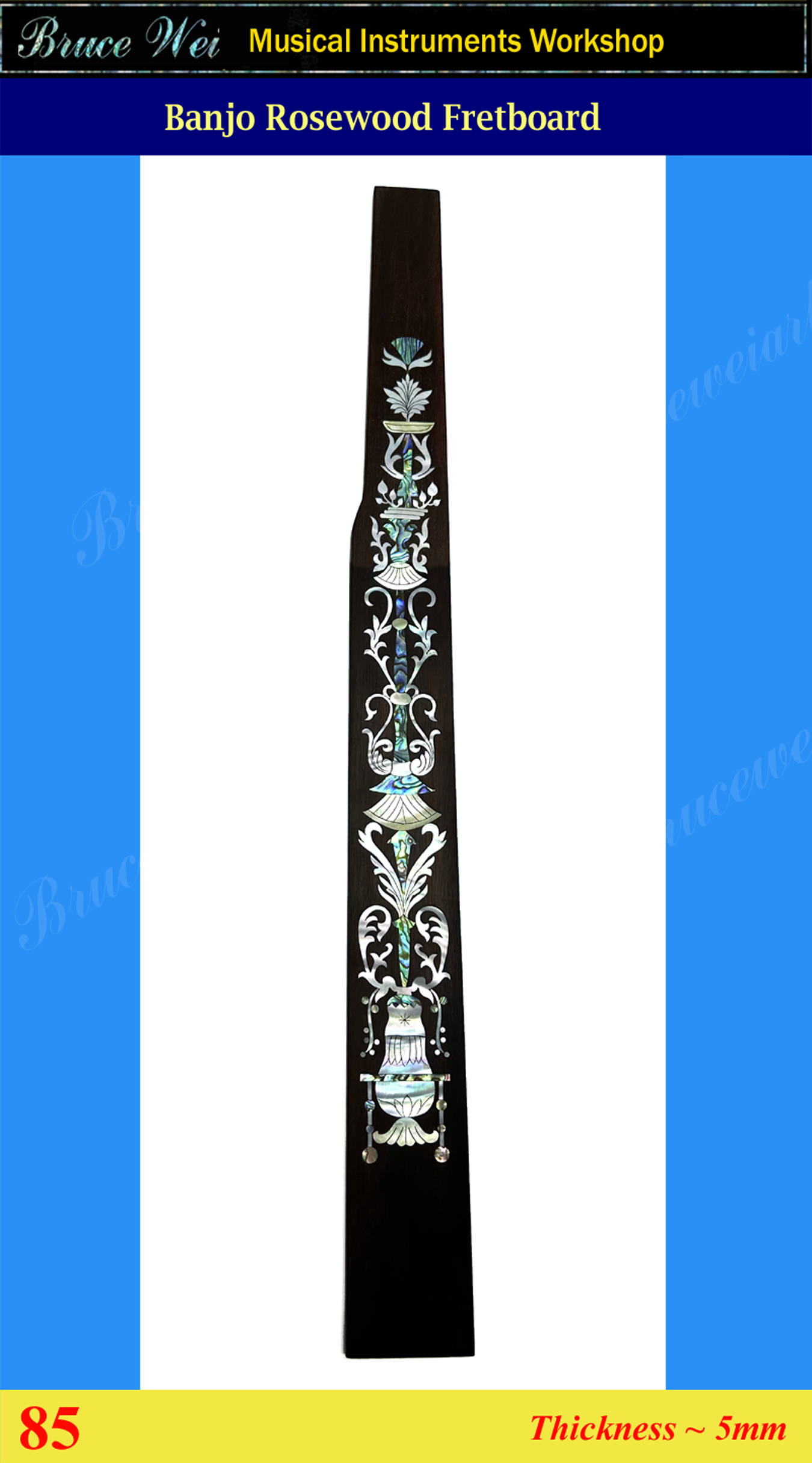 Banjo Handmade Rosewood Fretboard, MOP & Abalone Inlay, Bruce Wei (85)