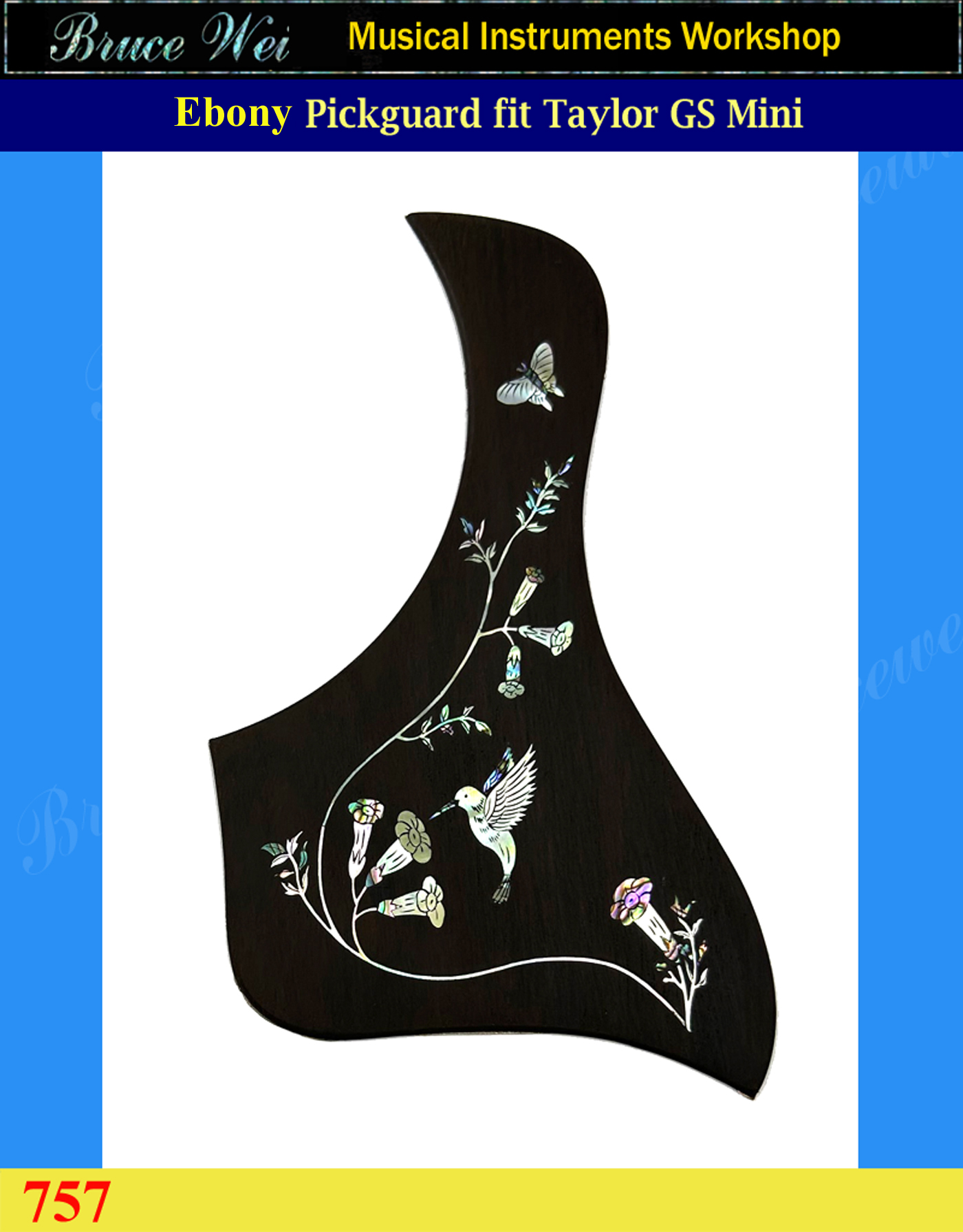 Bruce Wei, Guitar Ebony Pickguard fit Taylor GS Mini, HummingBird Inlay (757)