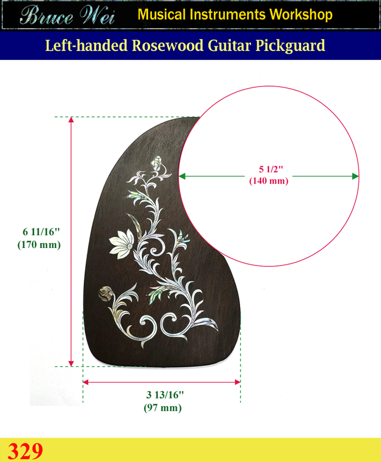 Bruce Wei, Guitar Left Hand Rosewood Pickguard W/ Mop Inlay ( 329 )