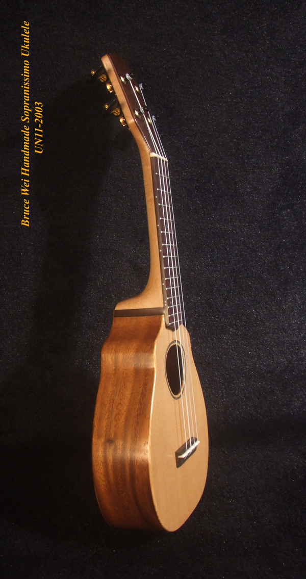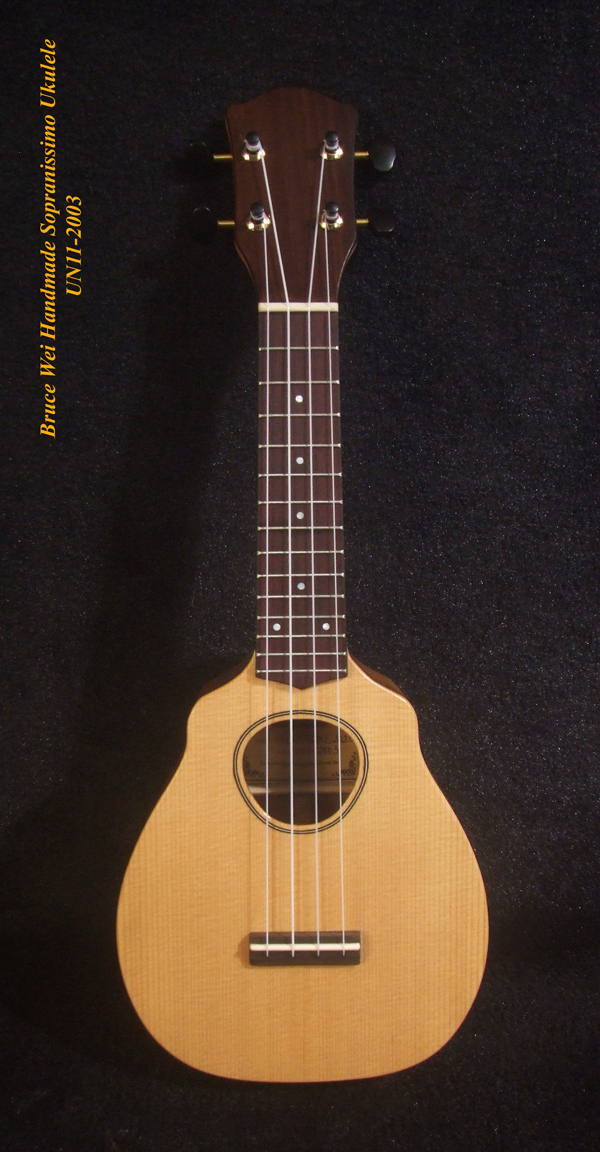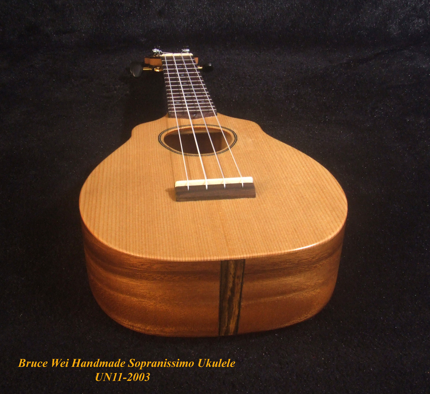 Bruce Wei Handmade Sopranissimo/ Pocket Ukulele, Solid Spruce & Acacia, MOP Inlay, Soft-bag UN11-2003