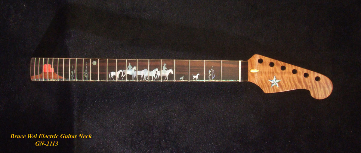 Electric Guitar Replacement Strat Neck, Handcrafted Solid Curly Maple, CowBoy inlay, Bruce Wei GN-2113