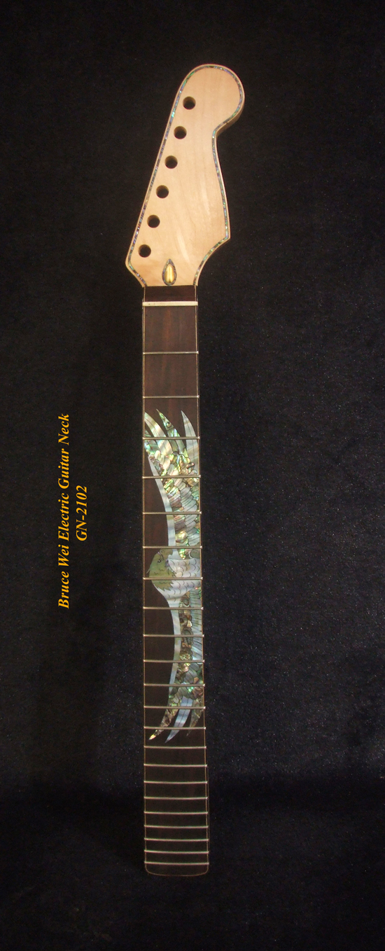 Electric Guitar Replacement Strat Neck, Handcrafted Solid Hard Maple, Eagle inlay, Bruce Wei GN-2102
