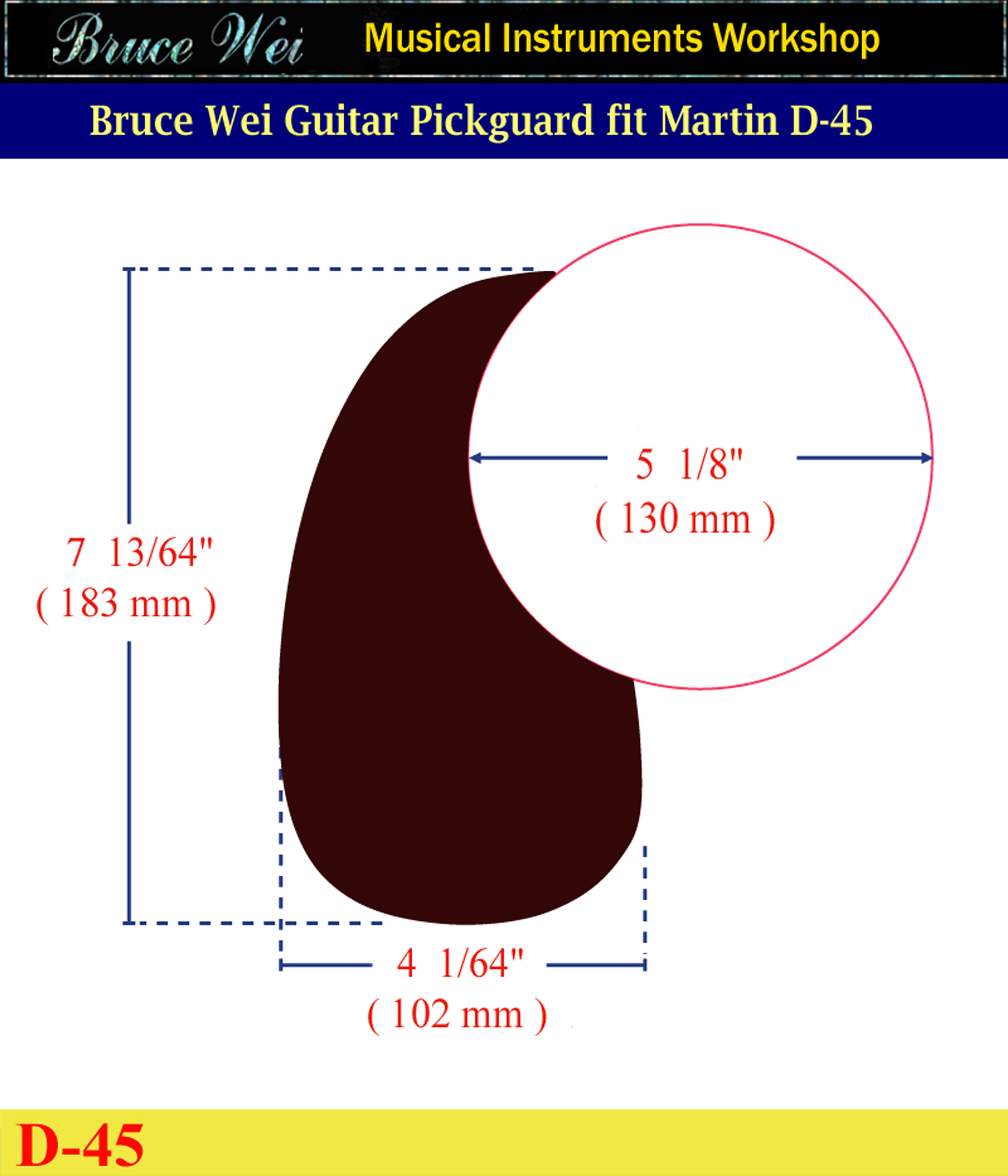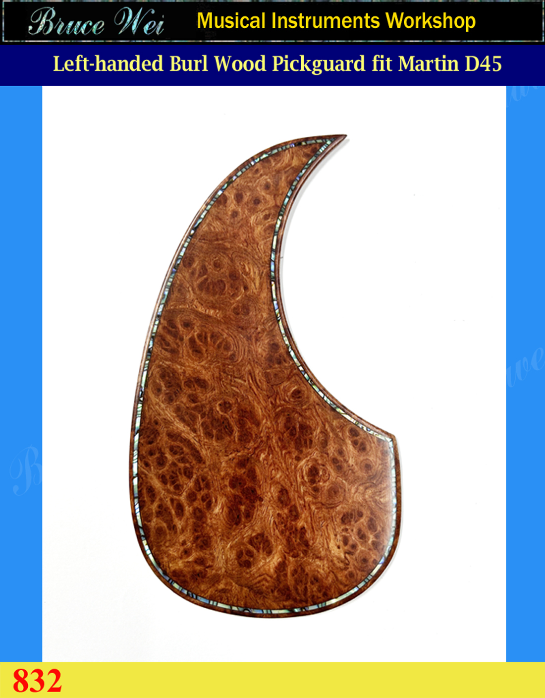 Fit Martin D45 Solid Burl Wood Left-handed Guitar Pickguard, Abalone Inlay, Bruce Wei (832)