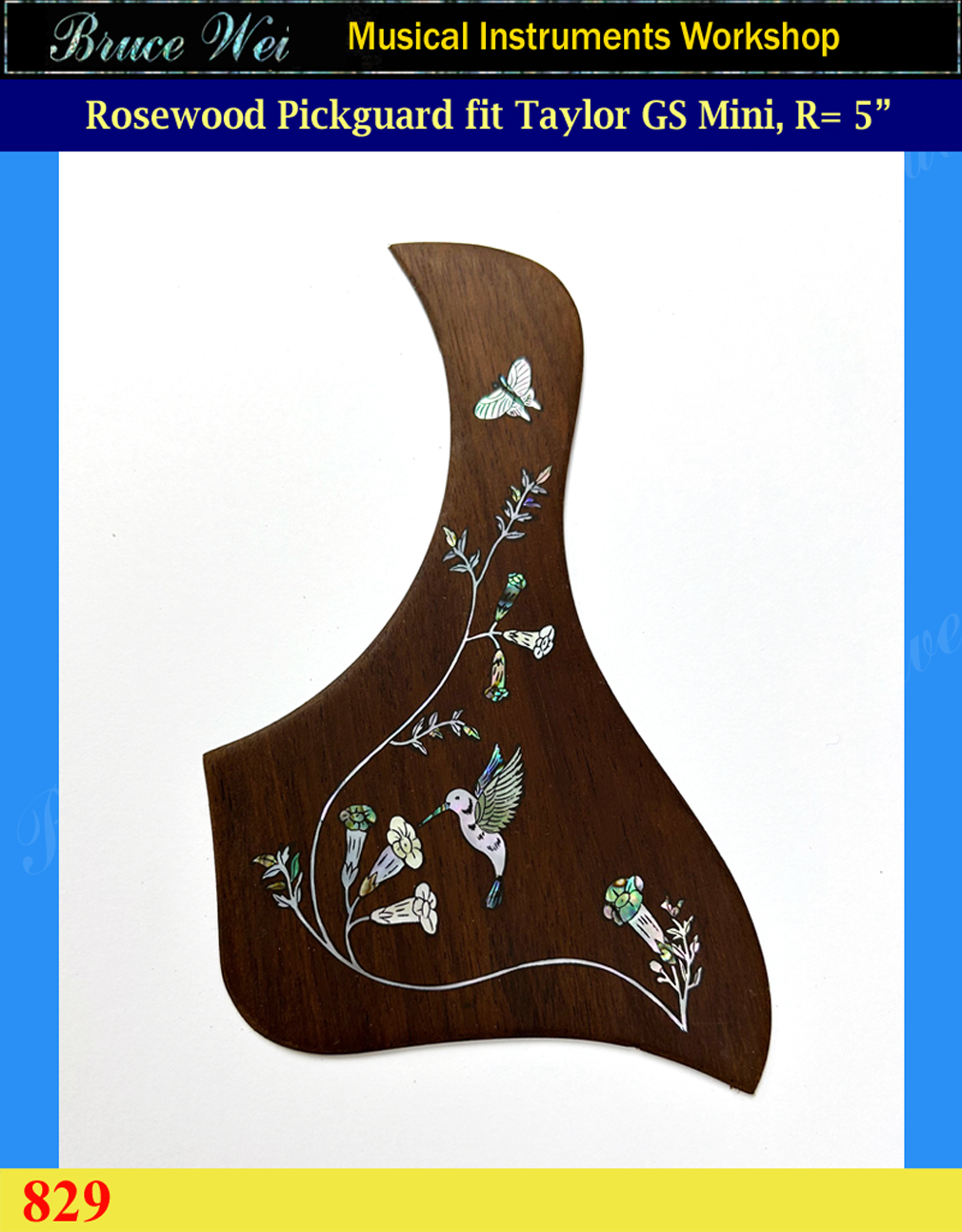 Fit Taylor GS Mini, 5" Rosette, Guitar Rosewood Pickguard, HummingBird Inlay, Bruce Wei (829)