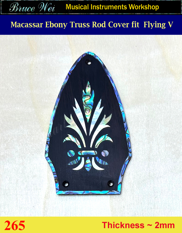 Free Shipping Fit Gibson Flying V, Macassar Ebony Truss Rod Cover, Abalone & MOP Inlay, Bruce Wei (265)
