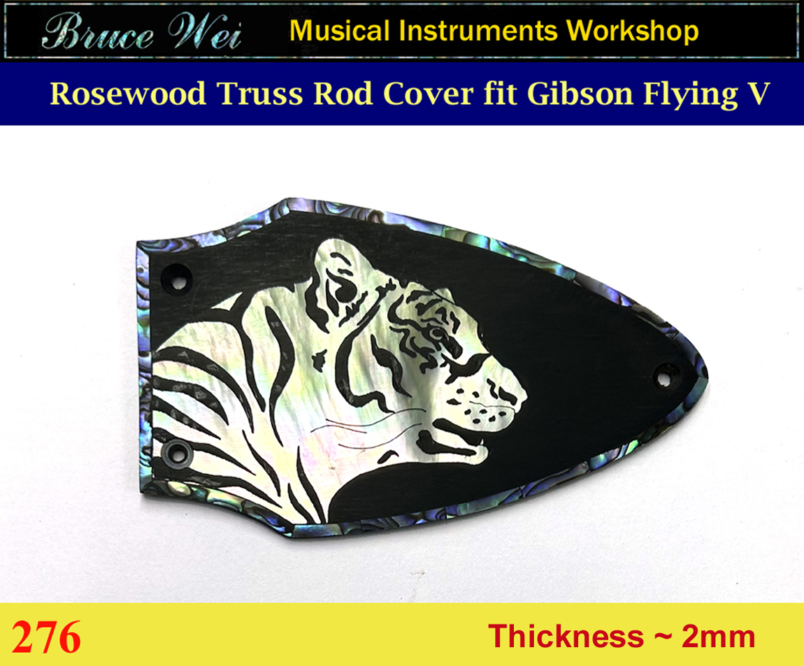 Free Shipping Fit Gibson Flying V, Solid Rosewood Truss Rod Cover, Tiger MOP Inlay, Bruce Wei ( 276 )