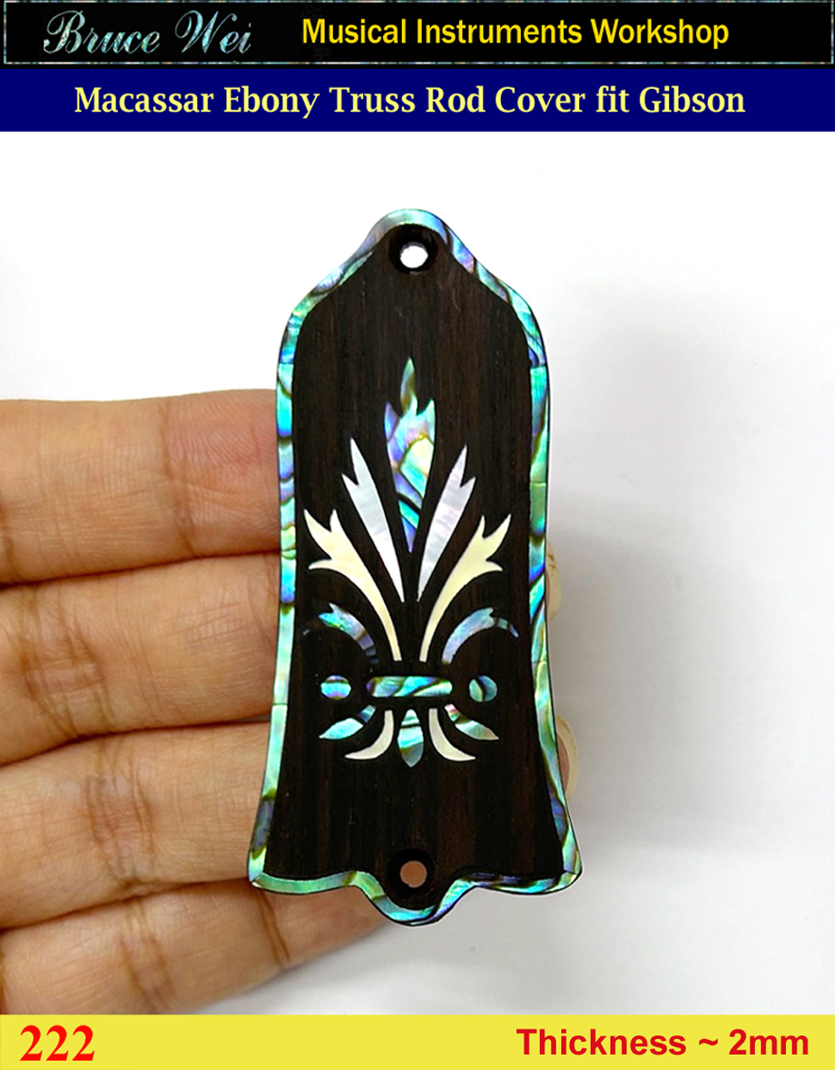 Free Shipping, Fit Gibson Handmade Macassar Ebony Truss Rod Cover, Abalone & MOP Inlay, Bruce Wei ( 222 )