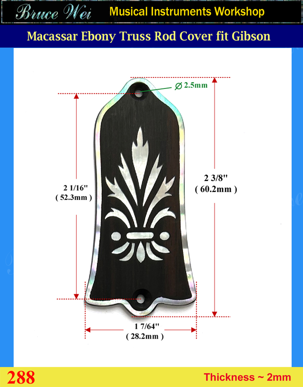 Free Shipping Fit Gibson Macassar Ebony Truss Rod Cover, White MOP Inlay, Bruce Wei (288)