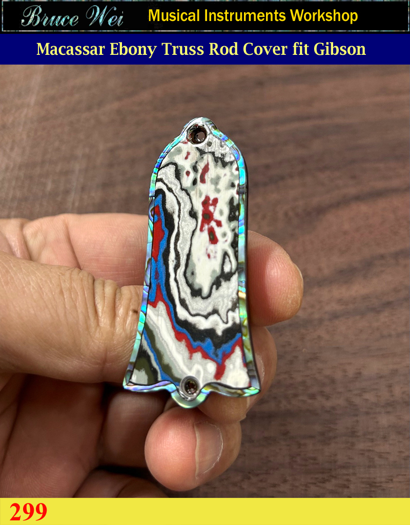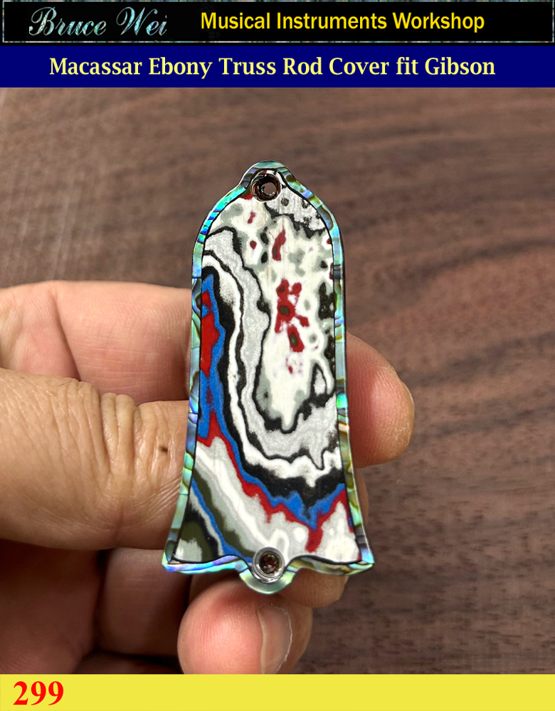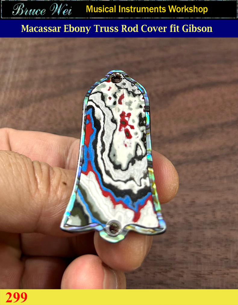 Free Shipping Fit Gibson, Unique Macassar Ebony Truss Rod Cover, Detroit Agate & Abalone Inlay, Bruce Wei (299)