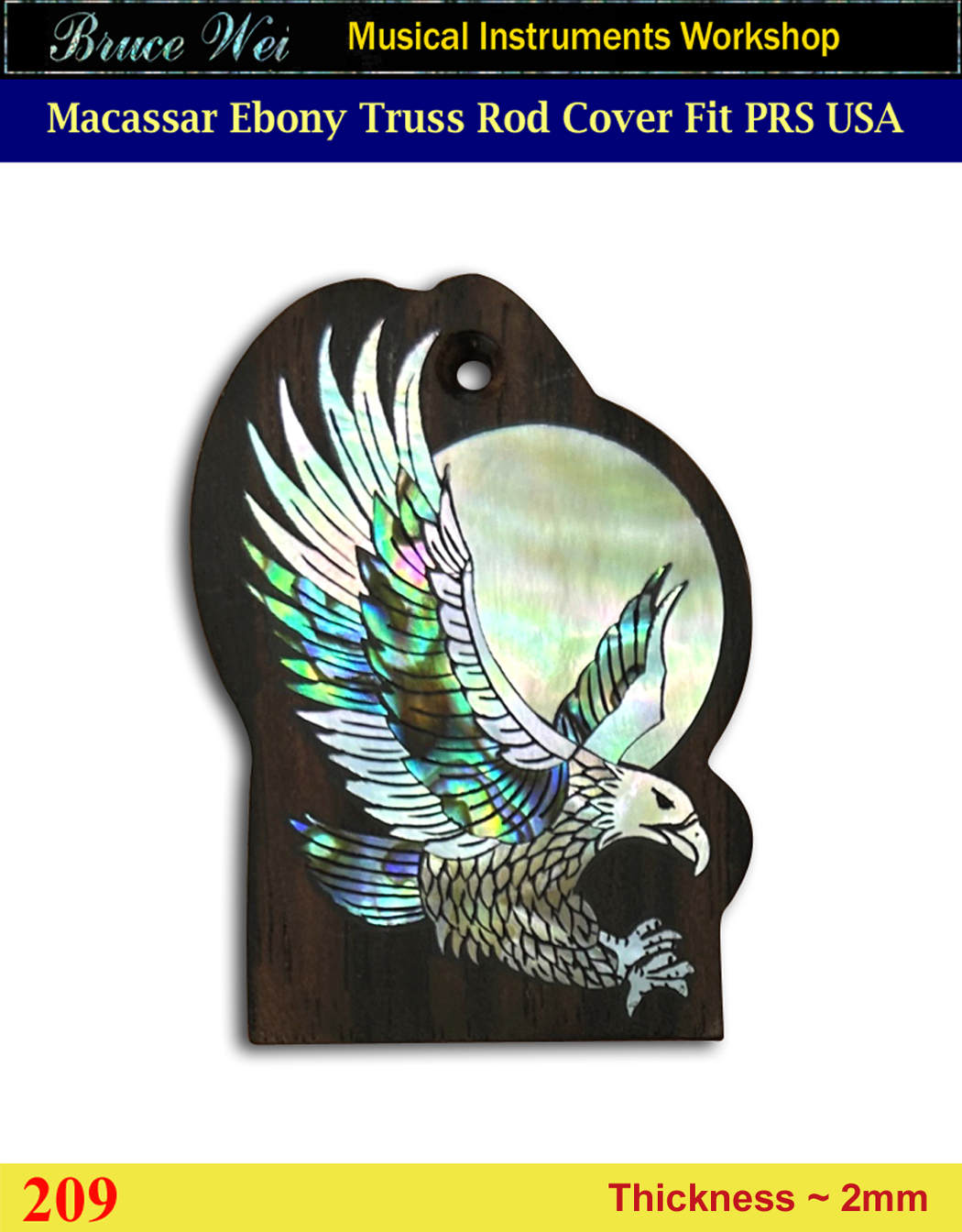 Free Shipping, Fit PRS USA Handmade Macassar Ebony Truss Rod Cover, Eagle Inlay, Bruce Wei ( 209 )