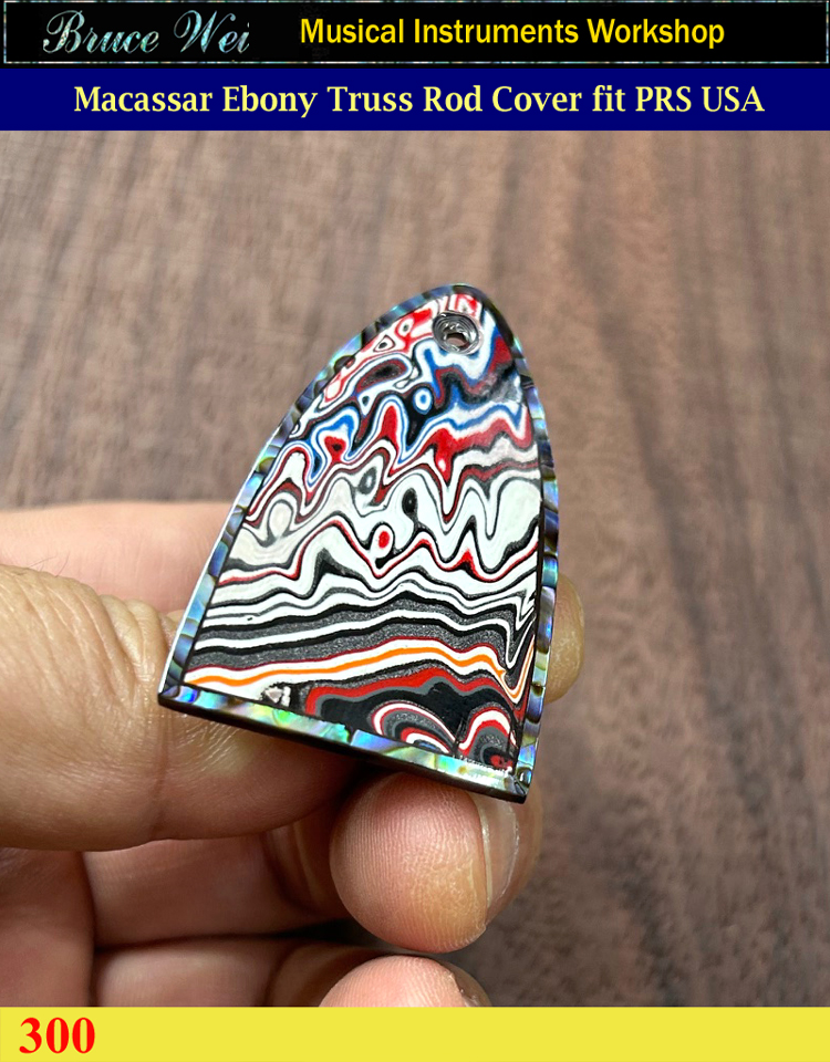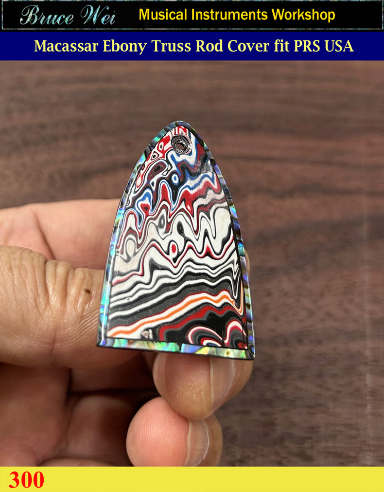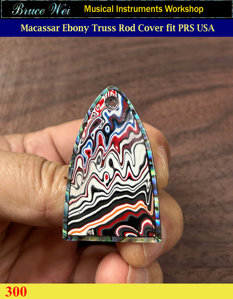 Free Shipping Fit PRS USA, Unique Macassar Ebony Truss Rod Cover, Detroit Agate & Abalone inlay, Bruce Wei (300)