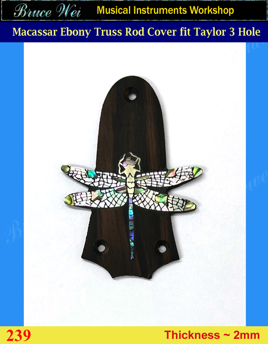 Free Shipping, Fit Taylor 3 Hole, Handmade Macassar Ebony Truss Rod Cover, Dragonfly inlay, Bruce Wei ( 239 )