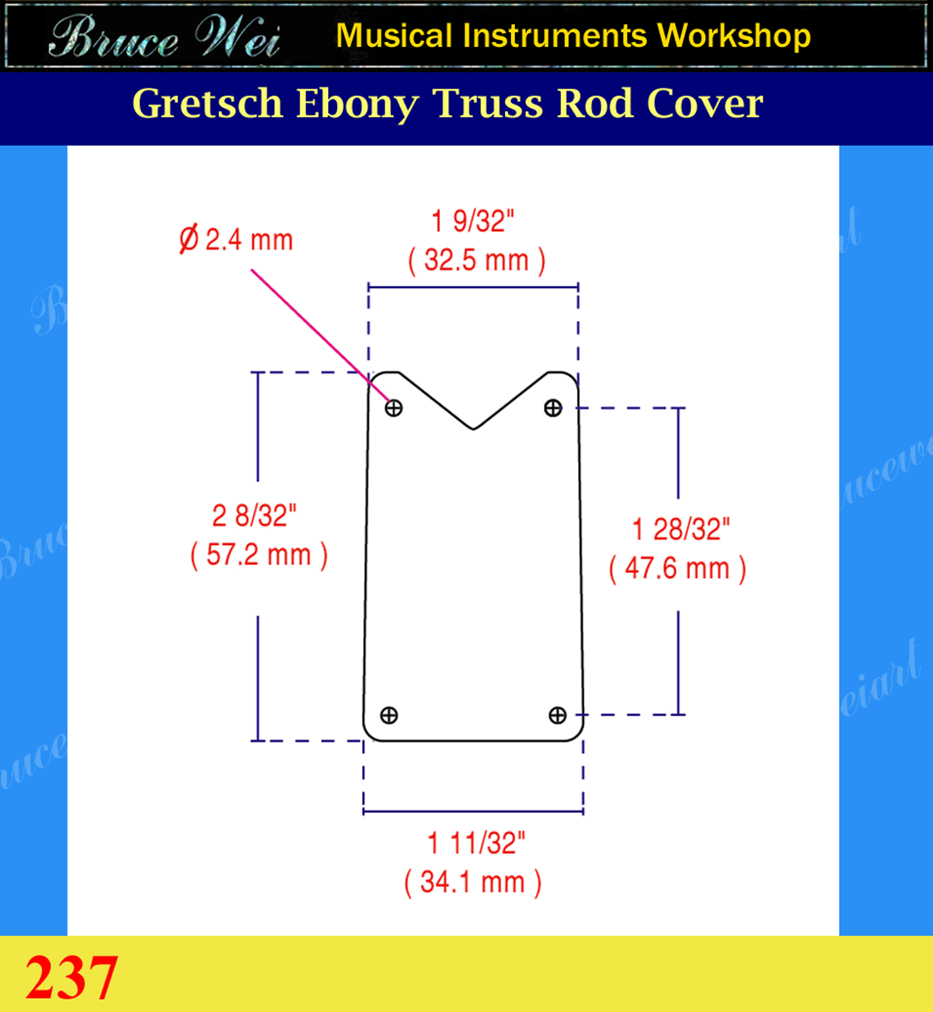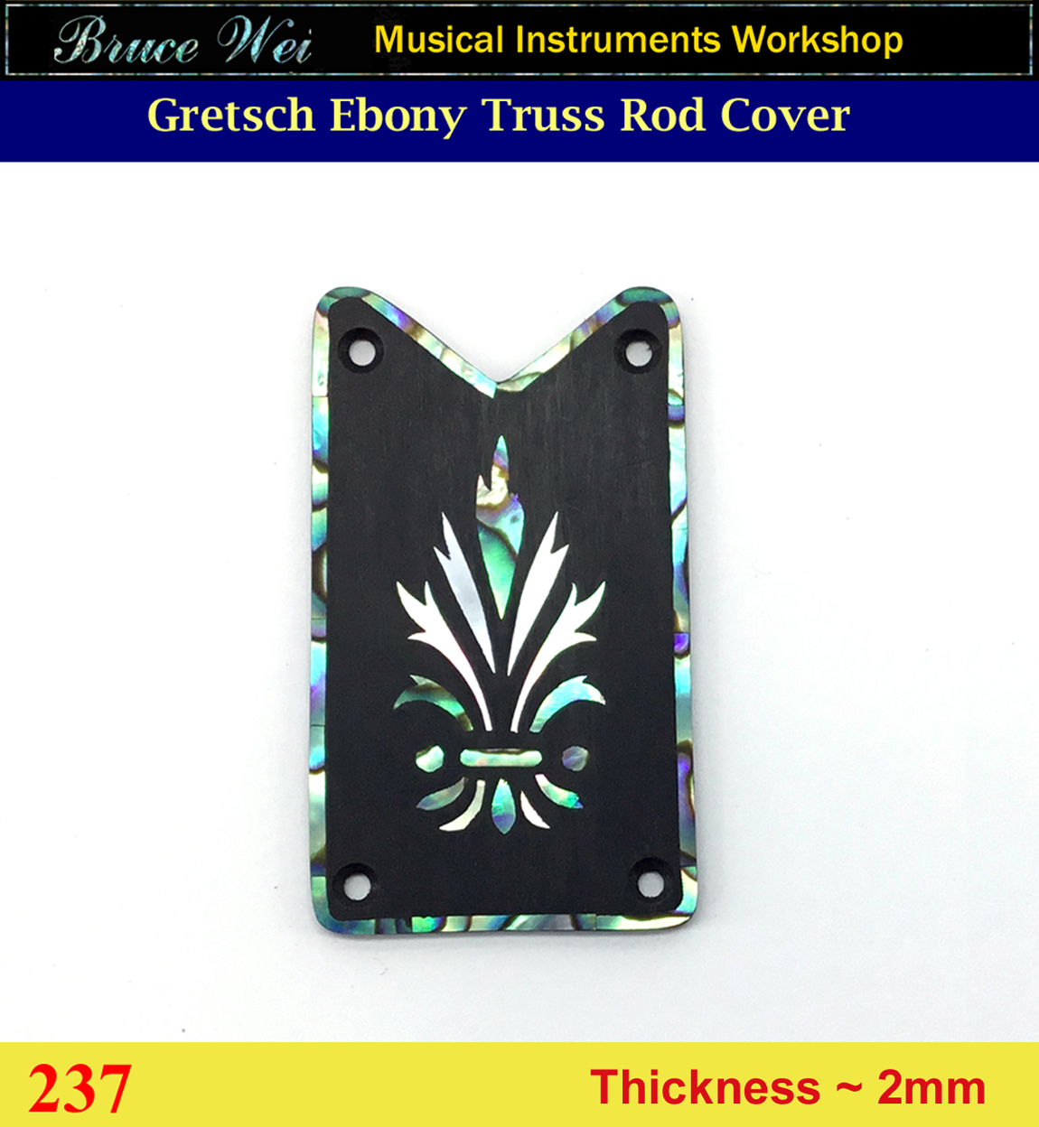 Free Shipping Gretsch Handcrafted Ebony Truss Rod Cover, MOP & Abalone Inlay, Bruce Wei ( 237 )