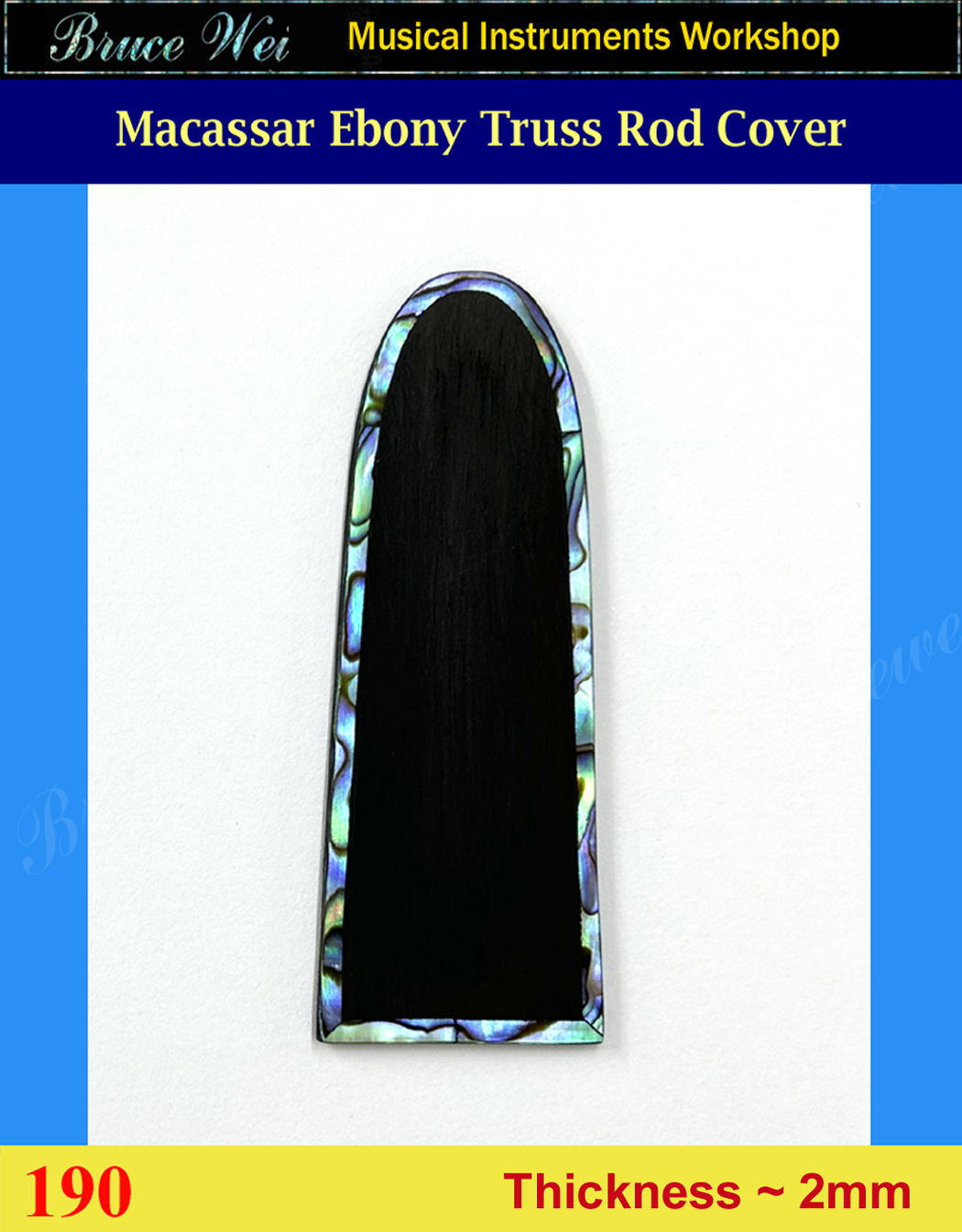Free Shipping Guitar Macassar Ebony Truss Rod Cover, Abalone Inlay, Bruce Wei ( 190 )