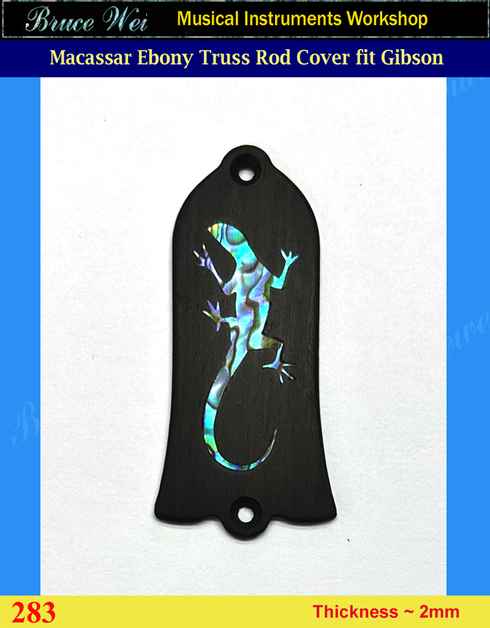 Free Shipping Guitar Macassar Ebony Truss Rod Cover, Abalone Inlay, Bruce Wei (283)
