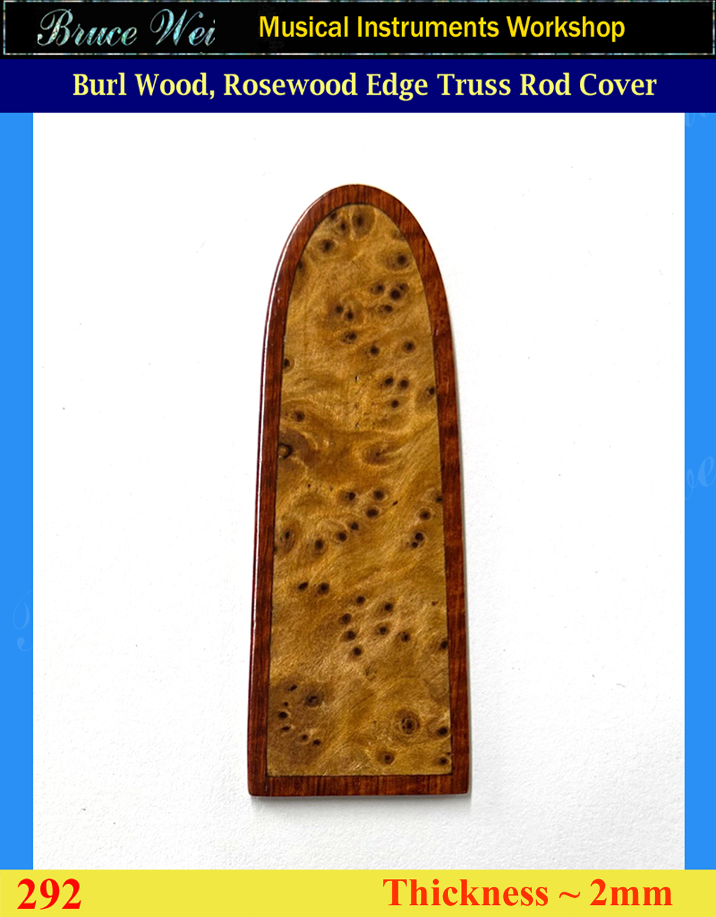 Free Shipping Guitar Solid Burl Wood, Rosewood edge Truss Rod Cover, Bruce Wei ( 292 )