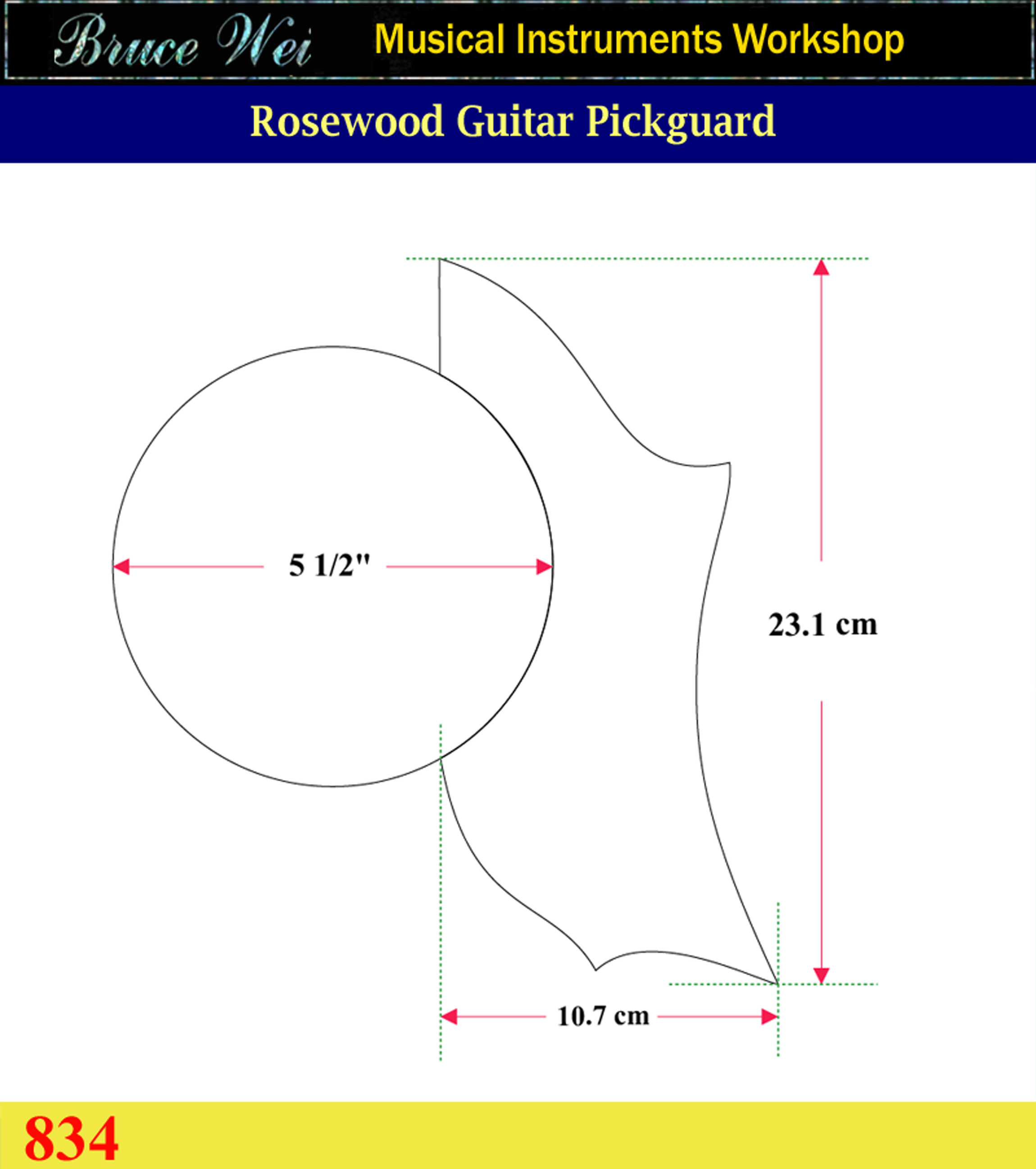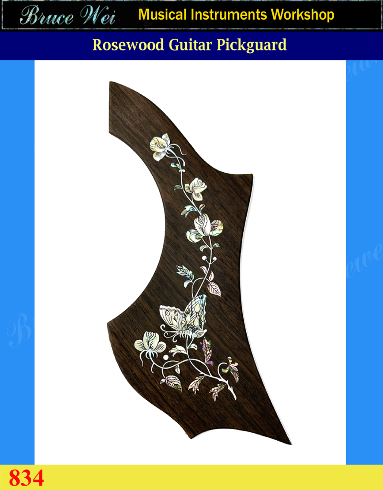 Guitar Rosewood Pickguard, Rose & Butterfly Inlay, Bruce Wei (834)