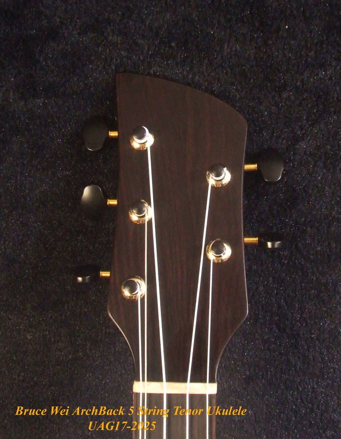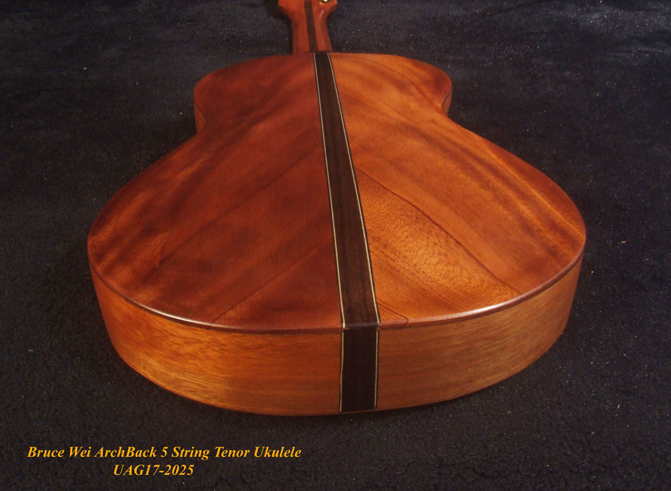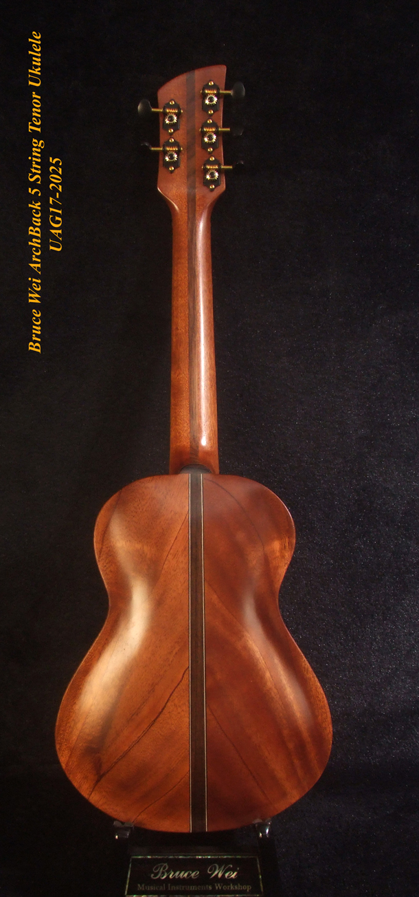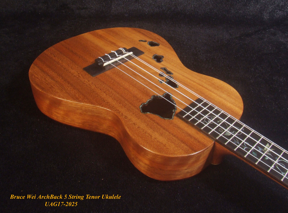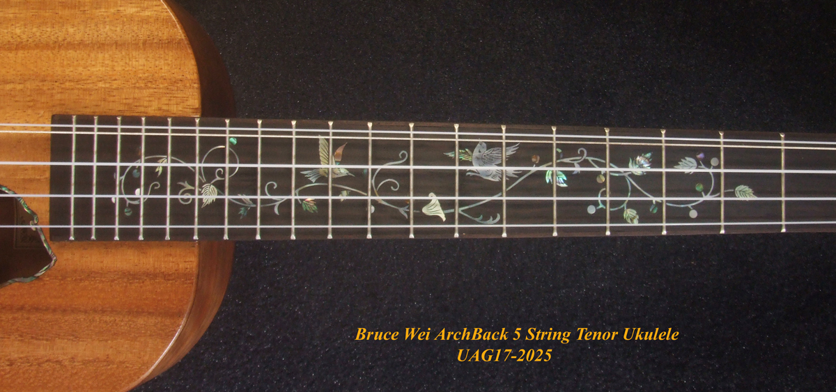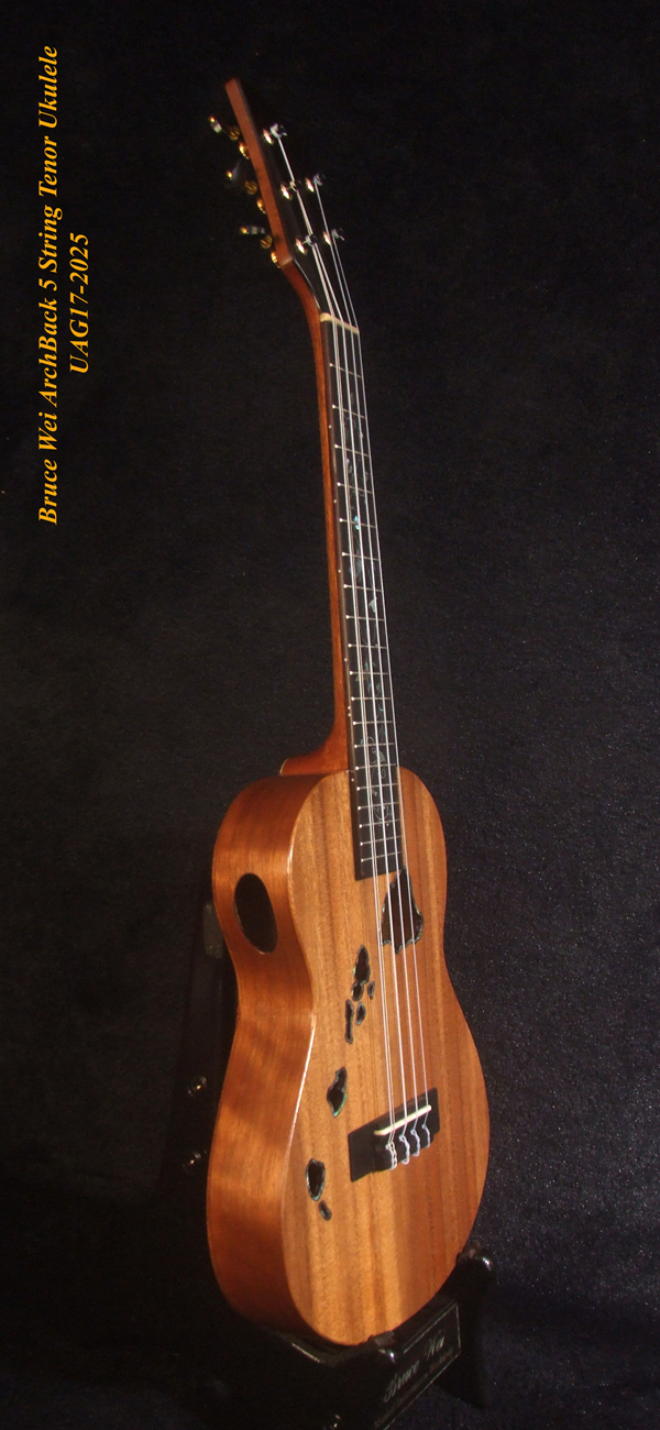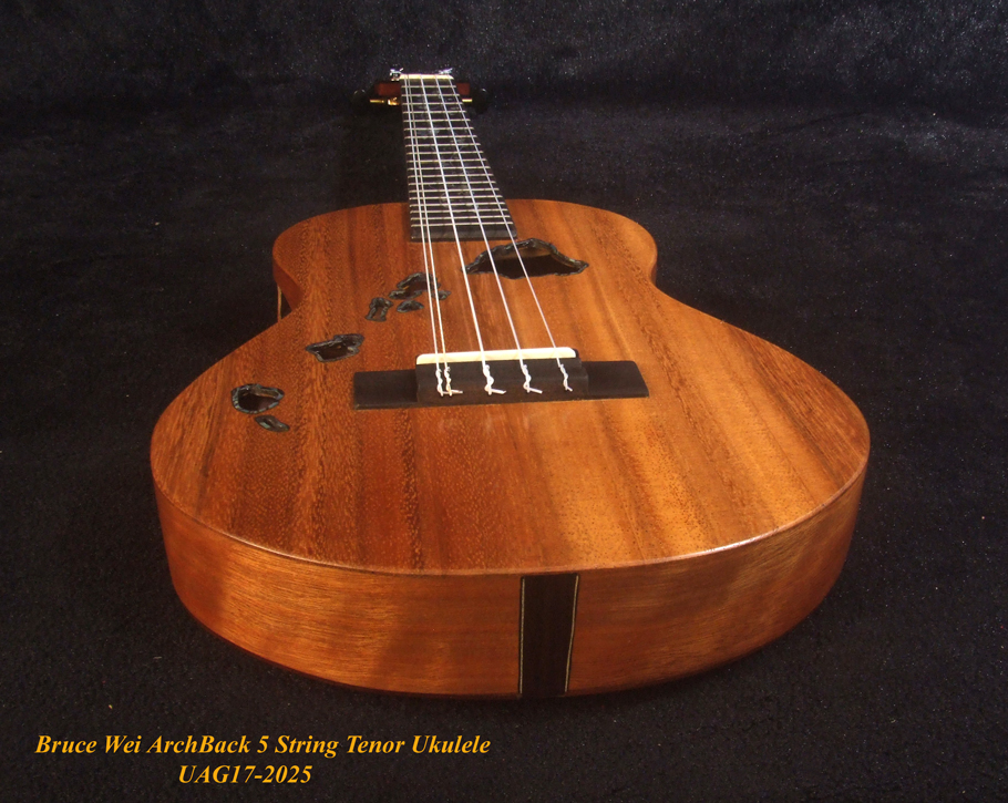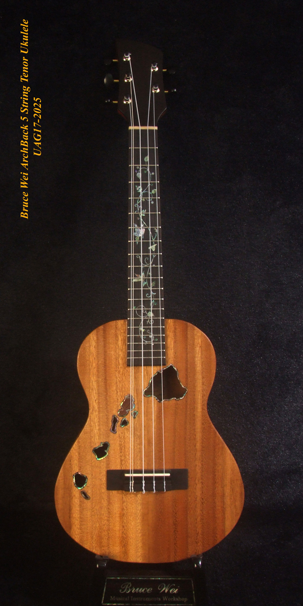 Handcrafted 5 String Tenor Ukulele, Solid Acacia, Carved Archback, The Islands Soundhole, Vine Inlay, Soft-bag, Bruce Wei UAG17-2025