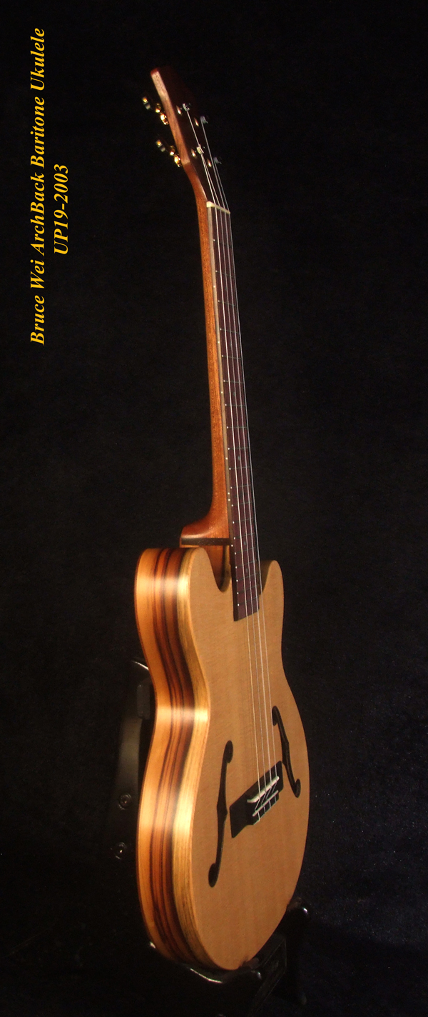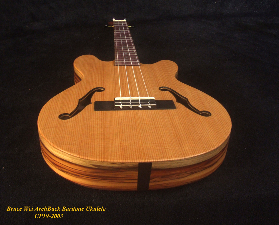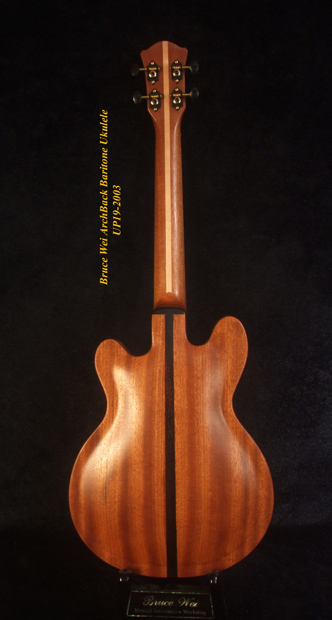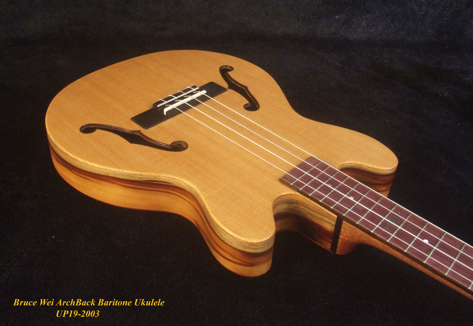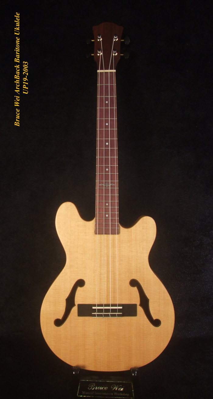 Handcrafted Baritone Ukulele, ArchBack, 4 String, Solid Spruce & Mahogany, Soft-bag, Bruce Wei UP19-2003-1