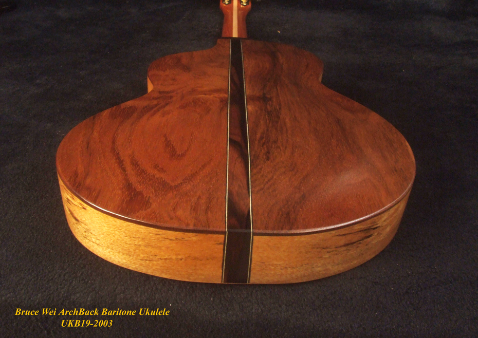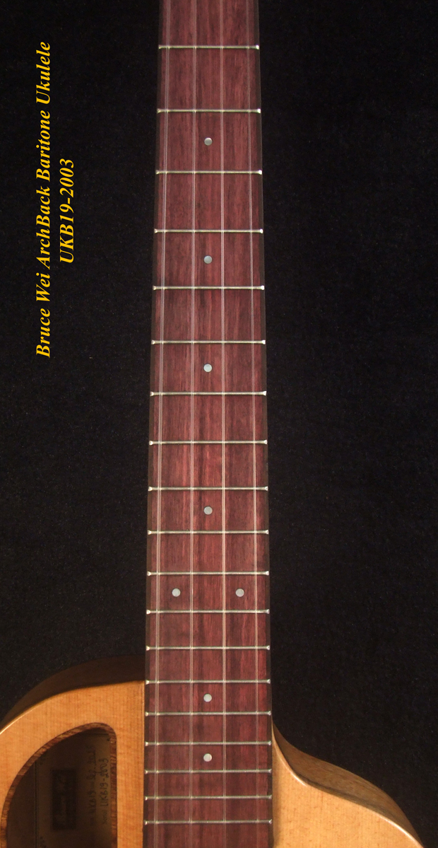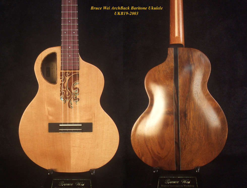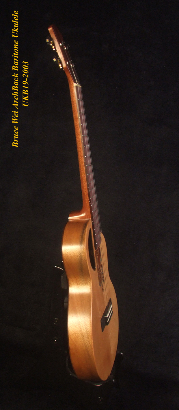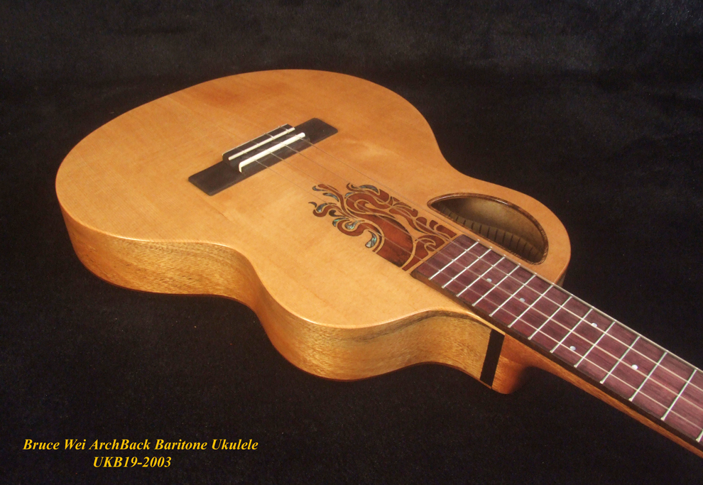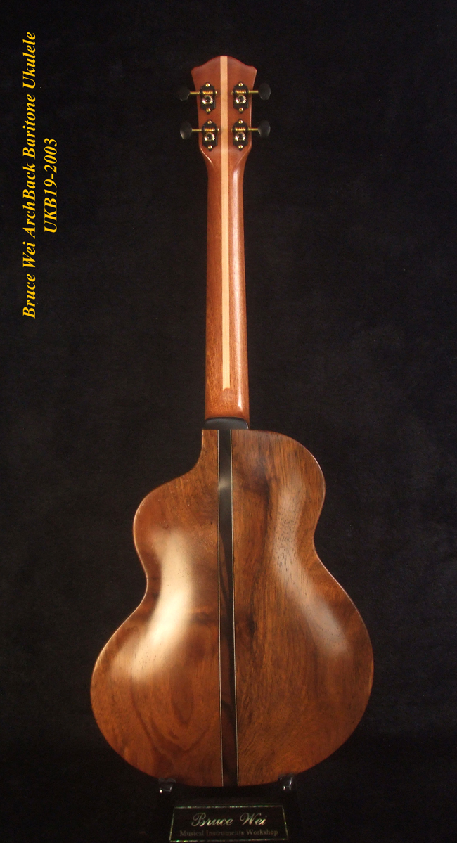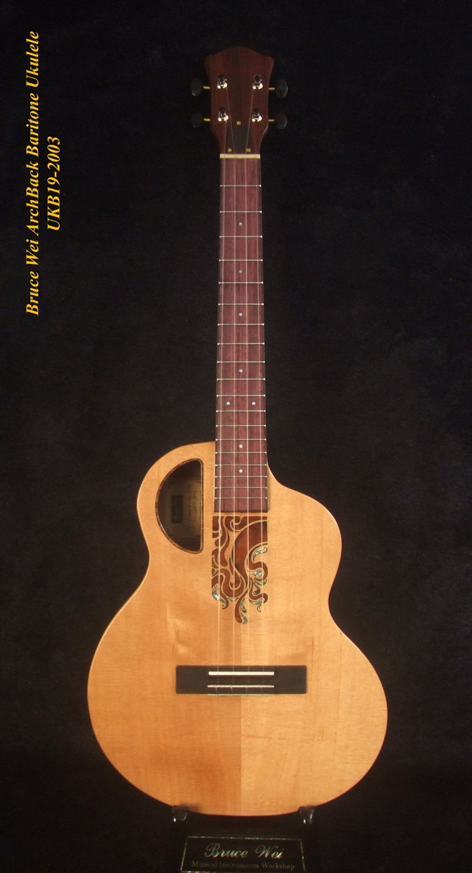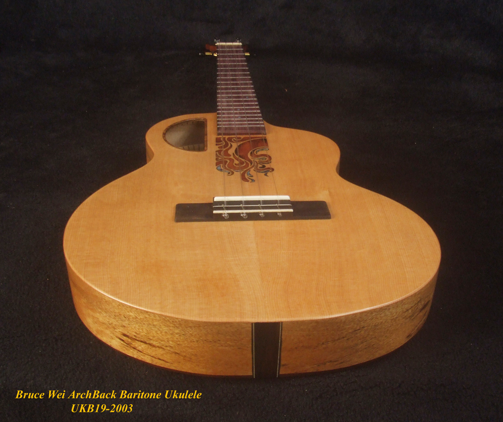 Handcrafted Baritone Ukulele, Carved ArchBack, Solid Spruce & Acacia, Soft-bag, Bruce Wei UKB19-2003