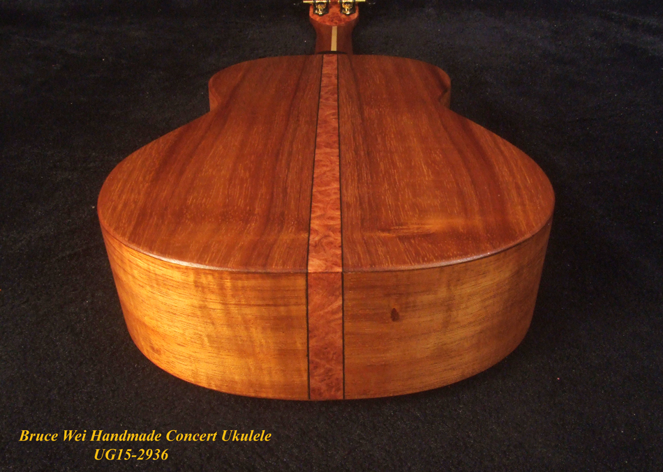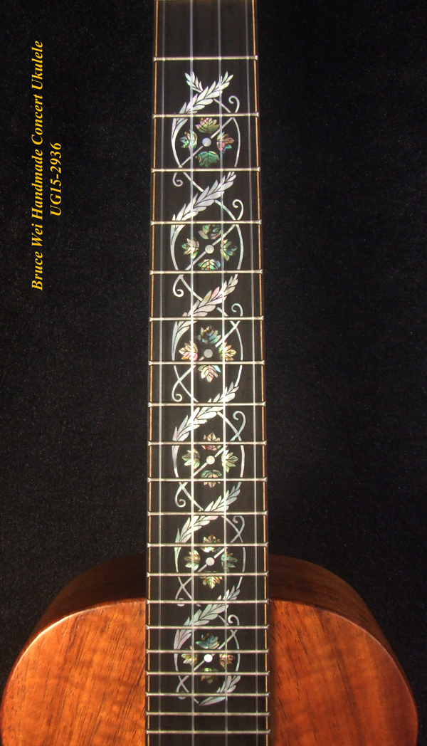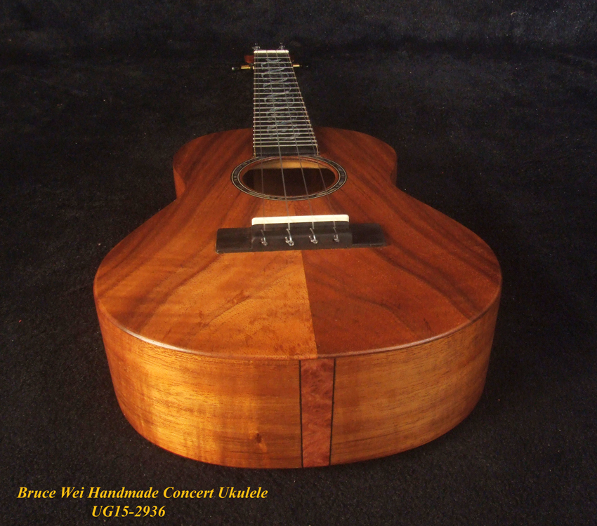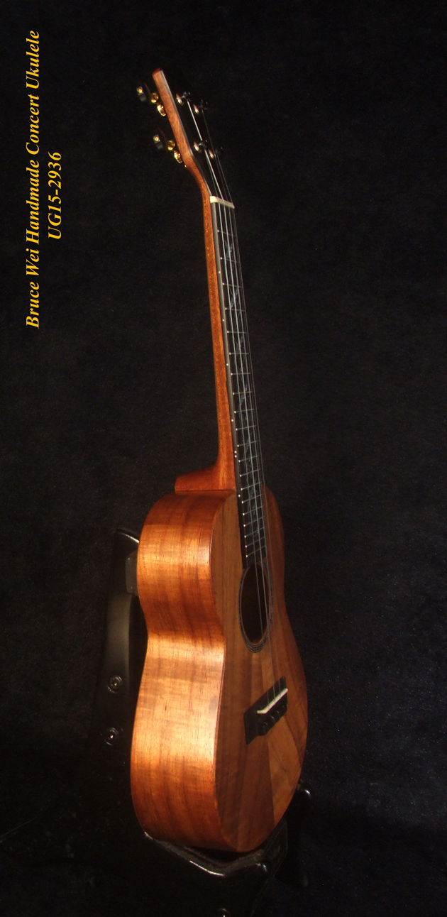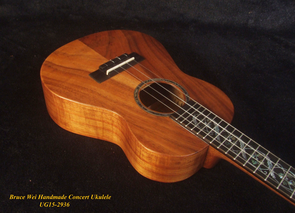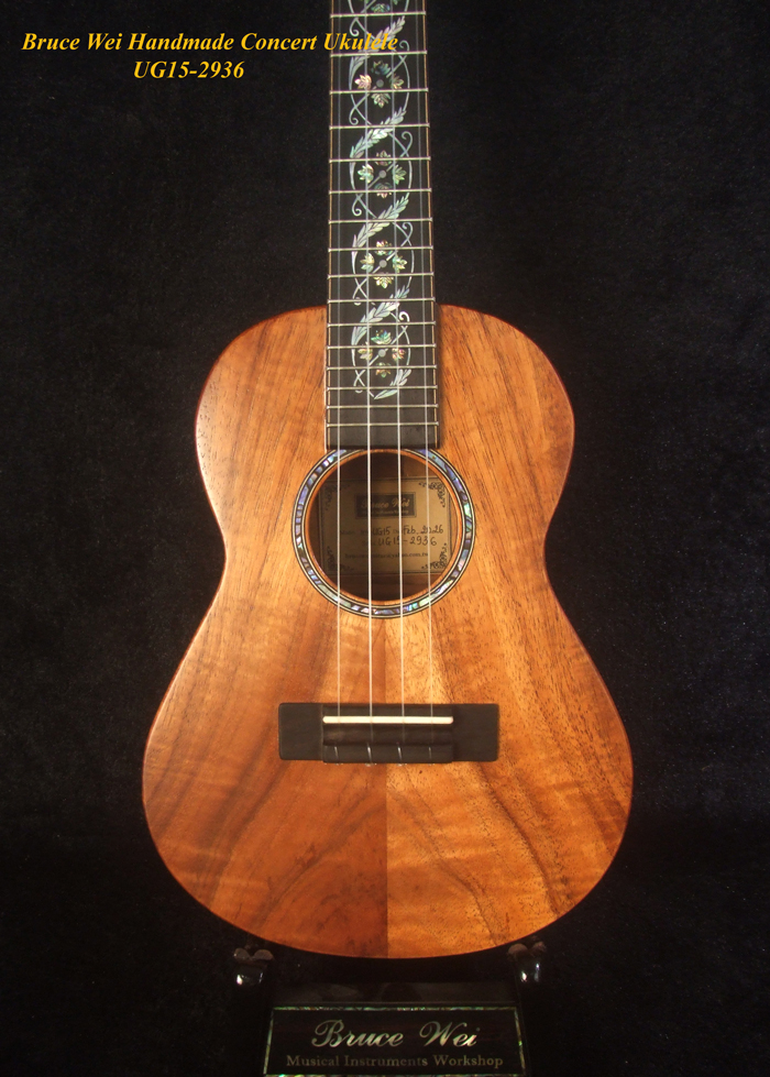 Handcrafted Concert Ukulele, Solid Hawaiian Koa, Abalone Inlay, Soft-bag, Bruce Wei UG15-2936