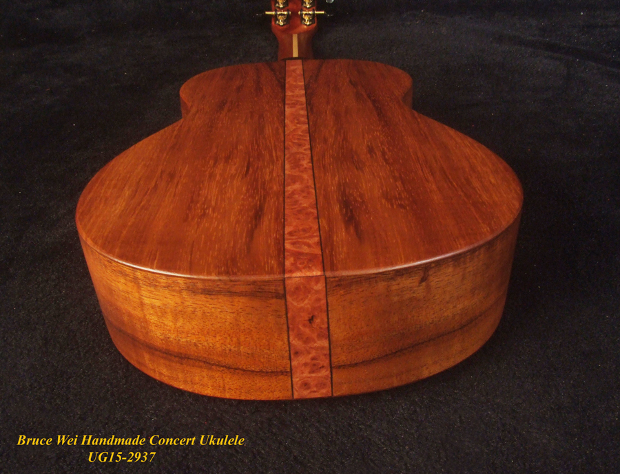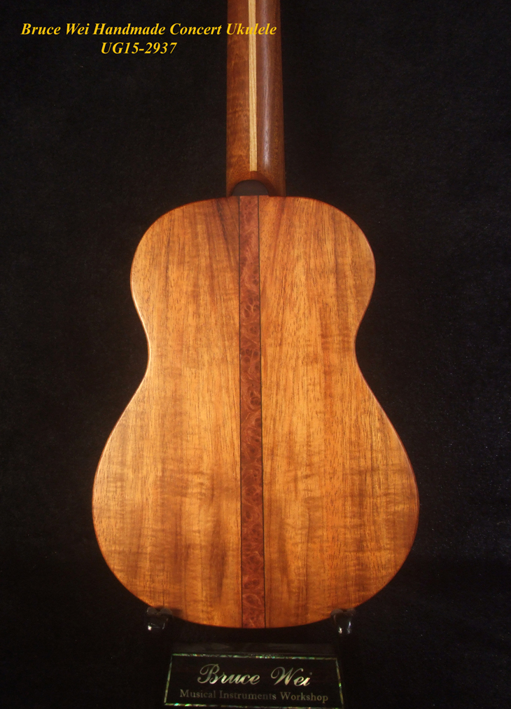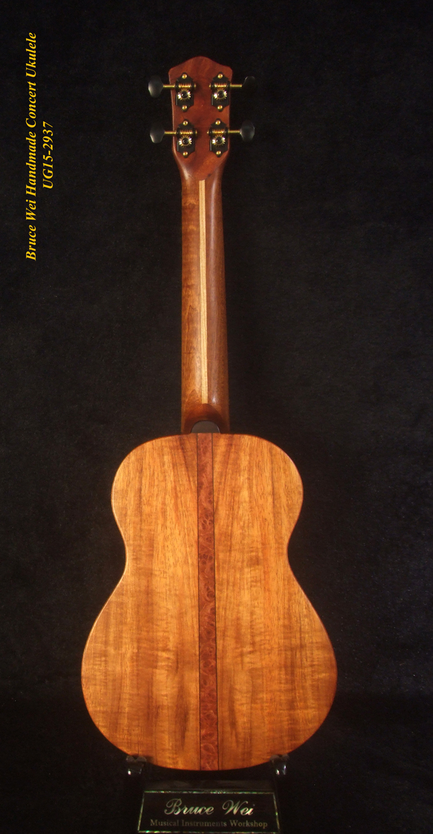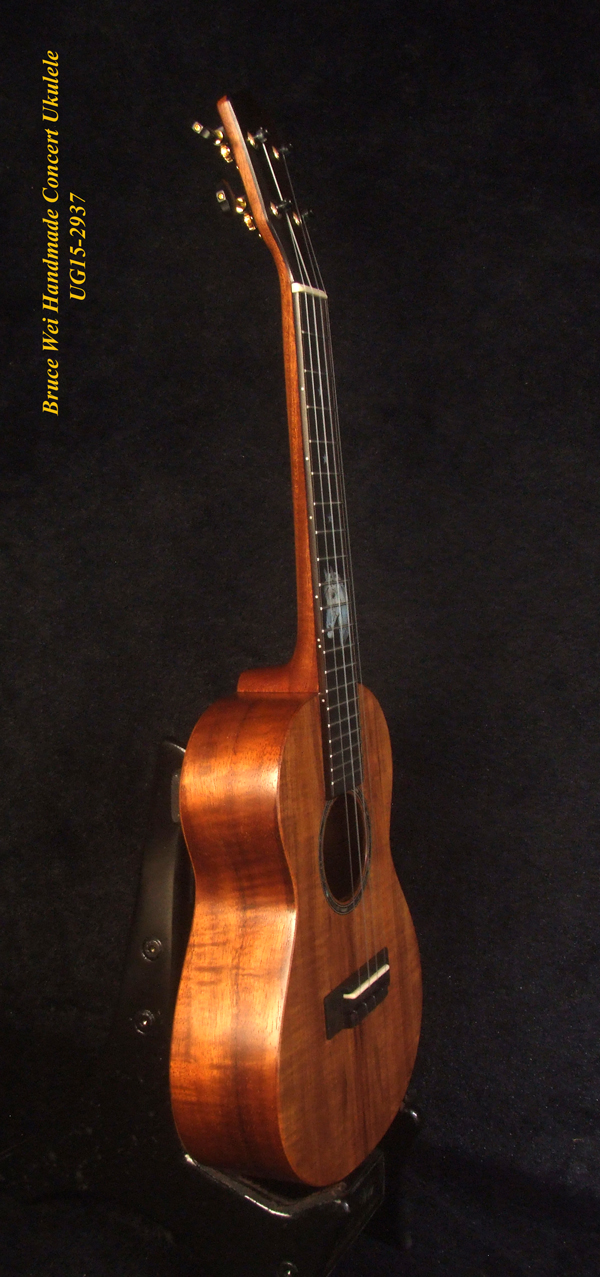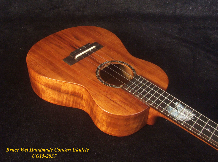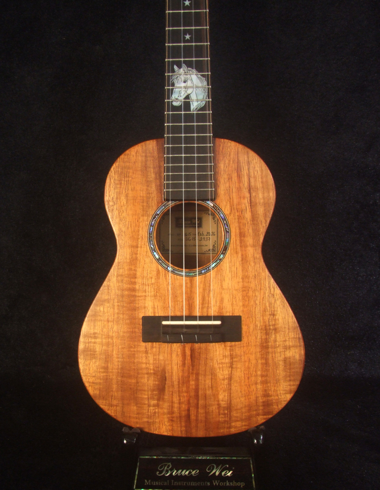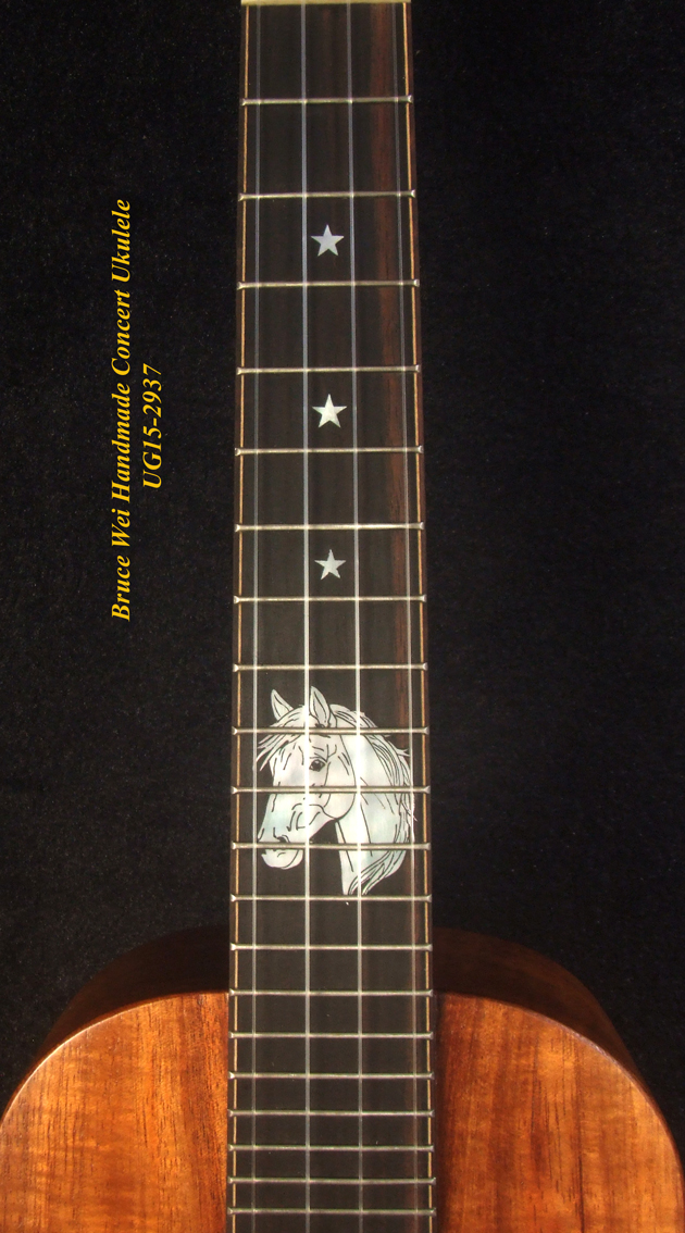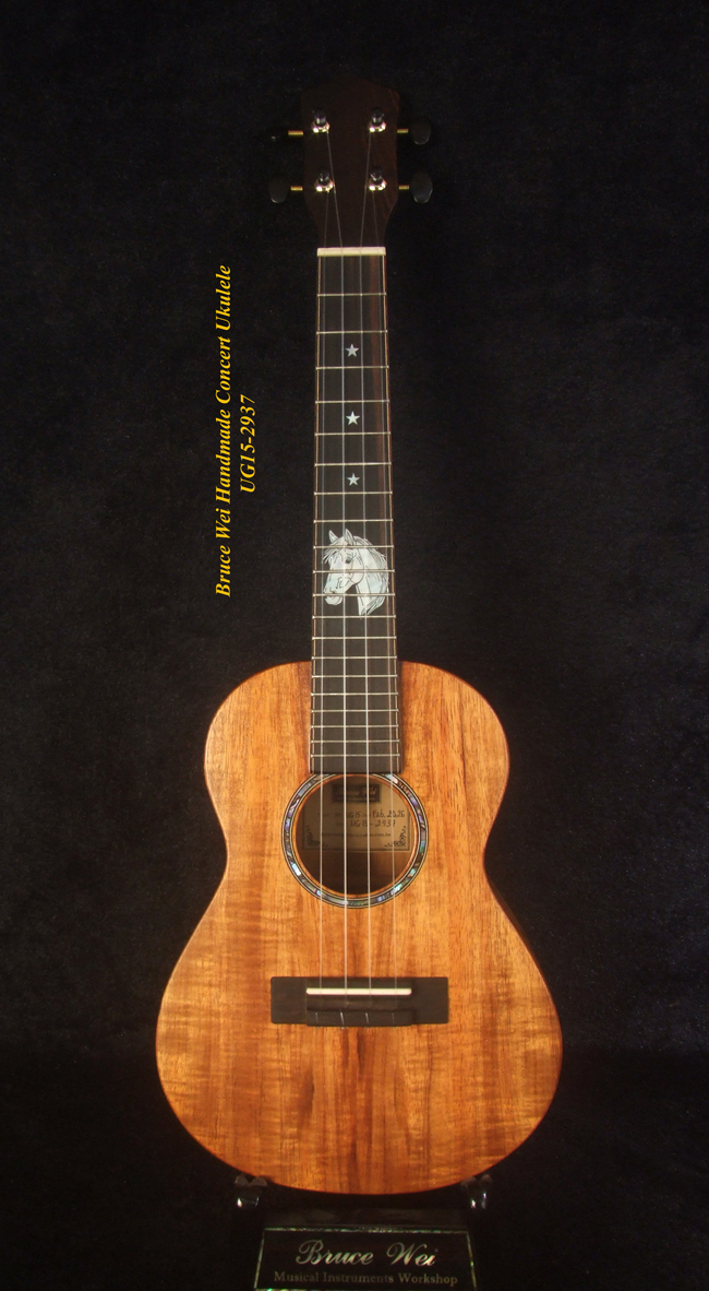 Handcrafted Concert Ukulele, Solid Hawaiian Koa, Horse Inlay, Soft-bag, Bruce Wei UG15-2937