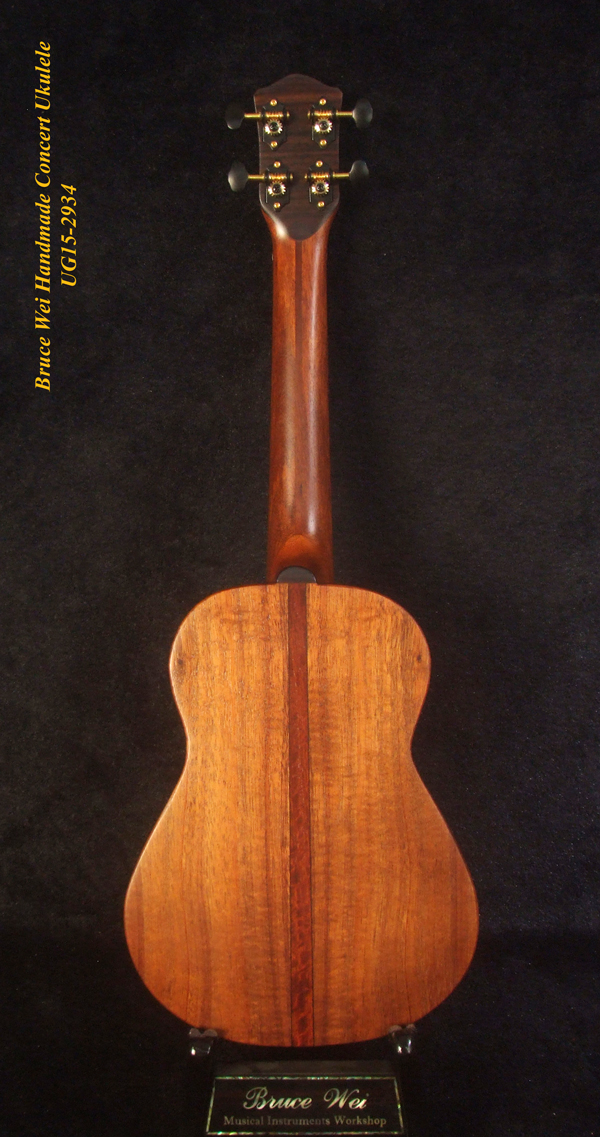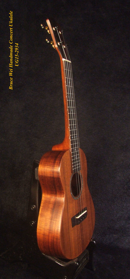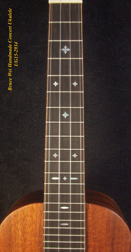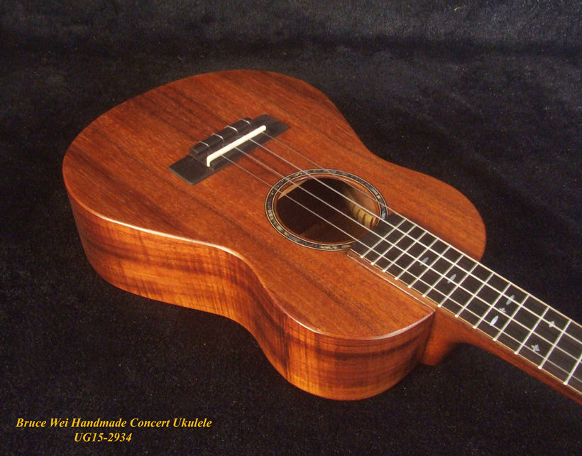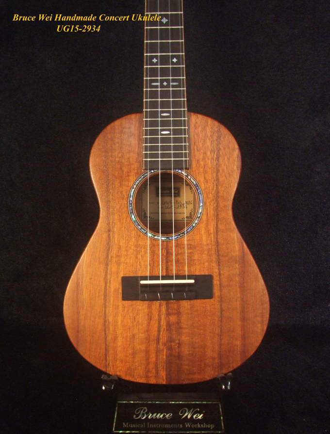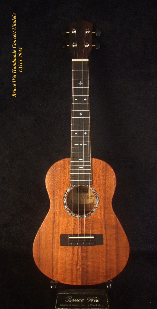 Handcrafted Concert Ukulele, Solid Hawaiian Koa, MOP Inlay, Soft-bag, Bruce Wei UG15-2934