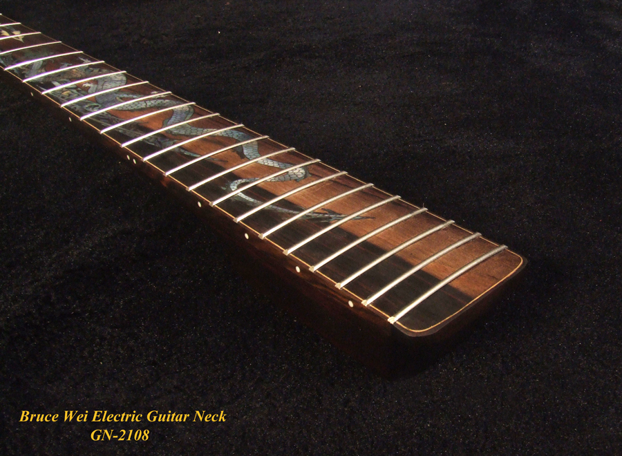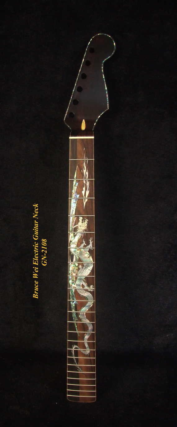 Handcrafted Electric Guitar Replacement Strat Neck, Solid Macassar Ebony, Dragon Abalone,Bruce Wei GN-2108