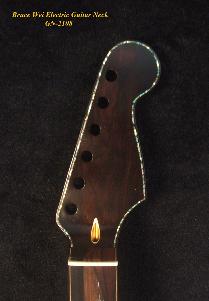 Handcrafted Electric Guitar Replacement Strat Neck, Solid Macassar Ebony, Dragon Abalone MOP Inlay, Bruce Wei GN-2108
