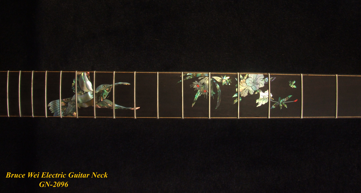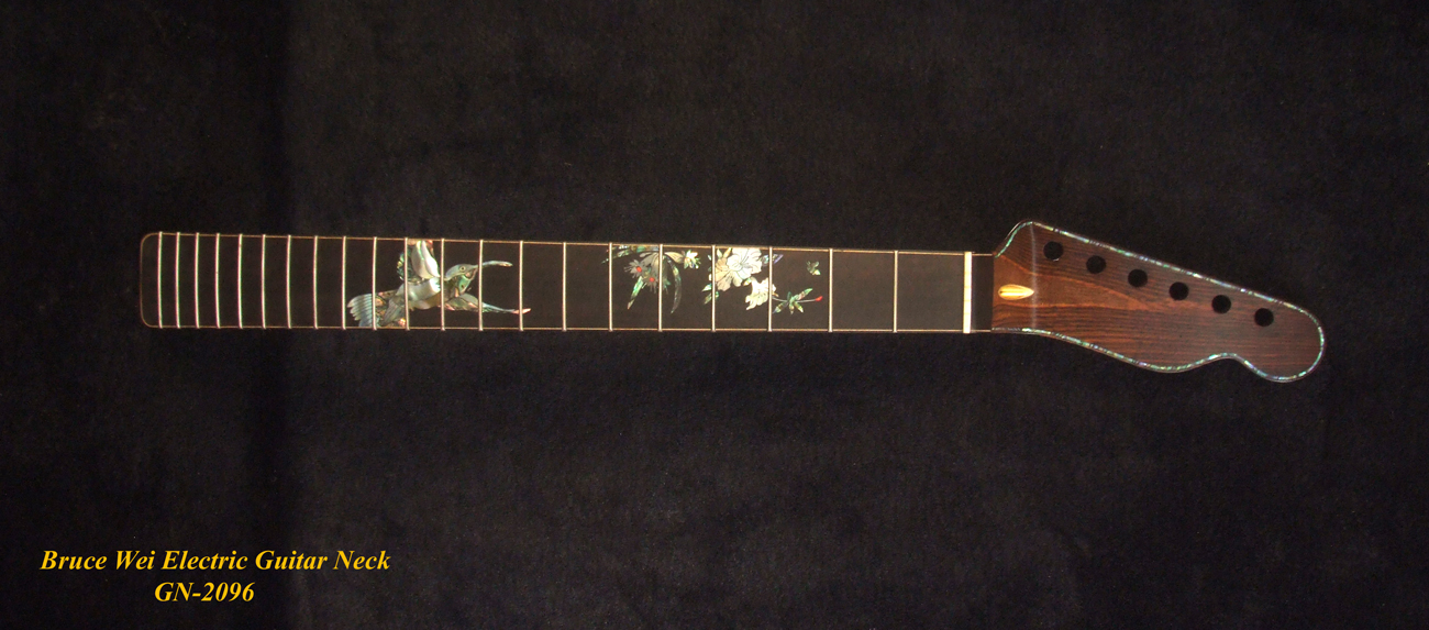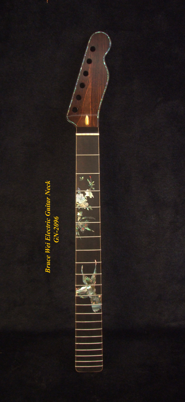 Handcrafted Electric Guitar Replacement TELE Neck, Solid Macassar Ebony, HummingBird Floral Abalone Inlay, Bruce Wei GN-2096