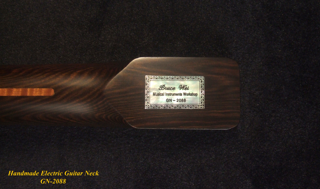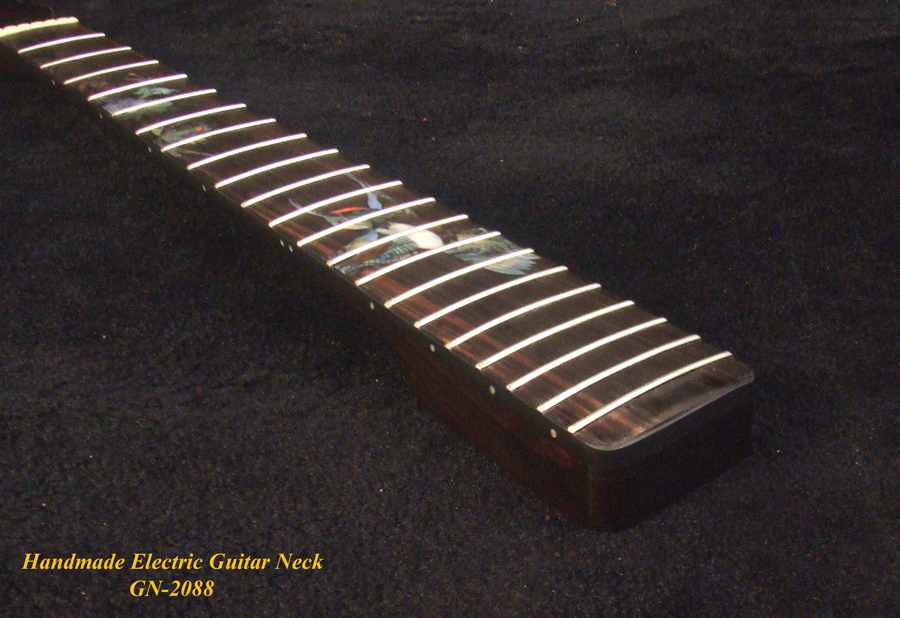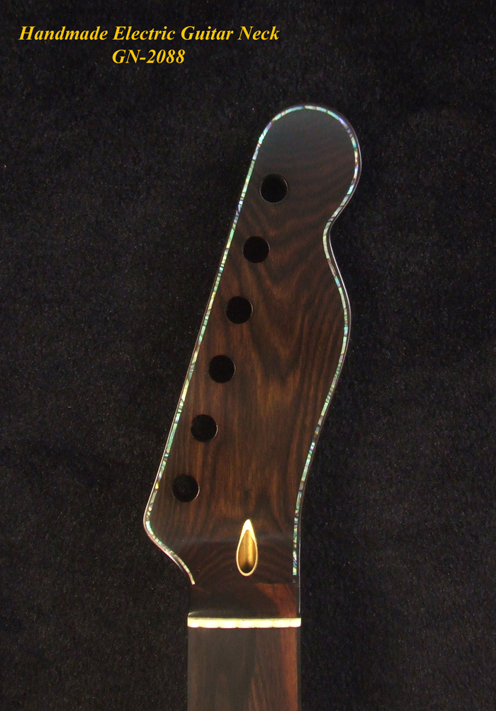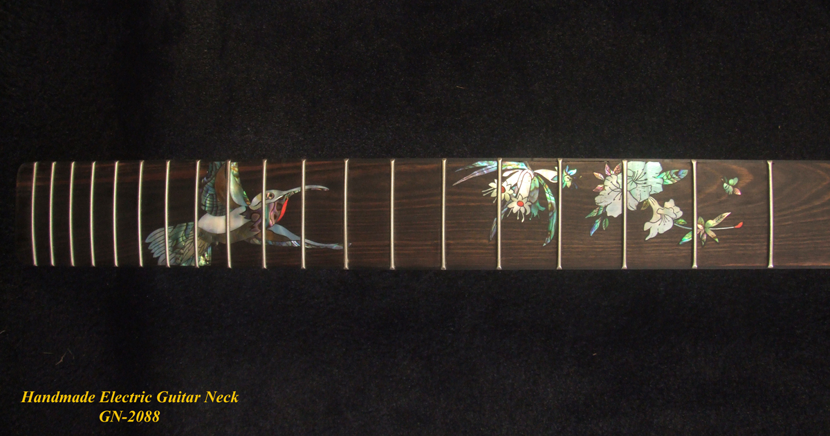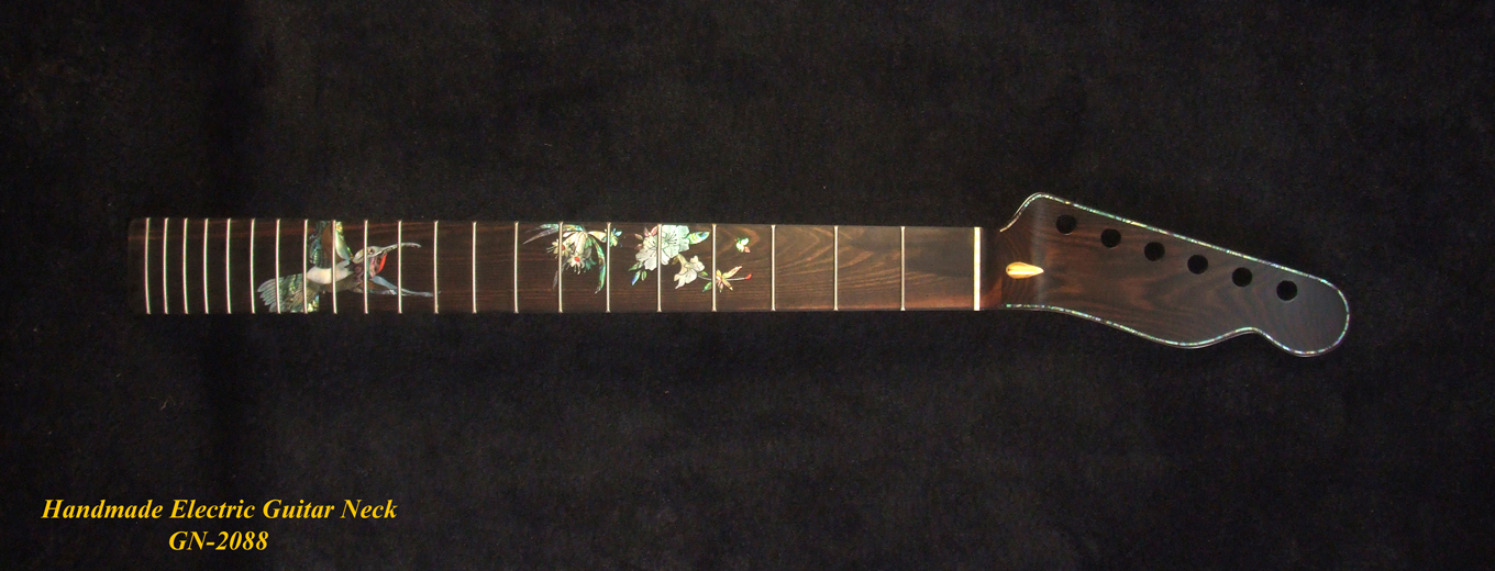 Handcrafted Electric Guitar Replacement Tele Neck, Solid Macassar Ebony, HummingBird Floral inlay, Bruce Wei GN-2088