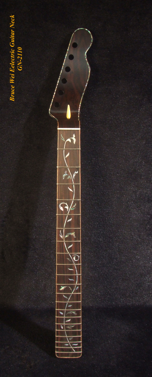 Handcrafted Electric Guitar Replacement TELE Neck, Solid Macassar Ebony, Vine Inlay, Bruce Wei GN-2110