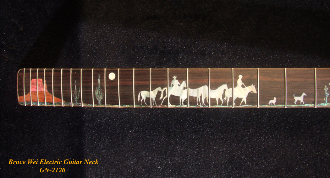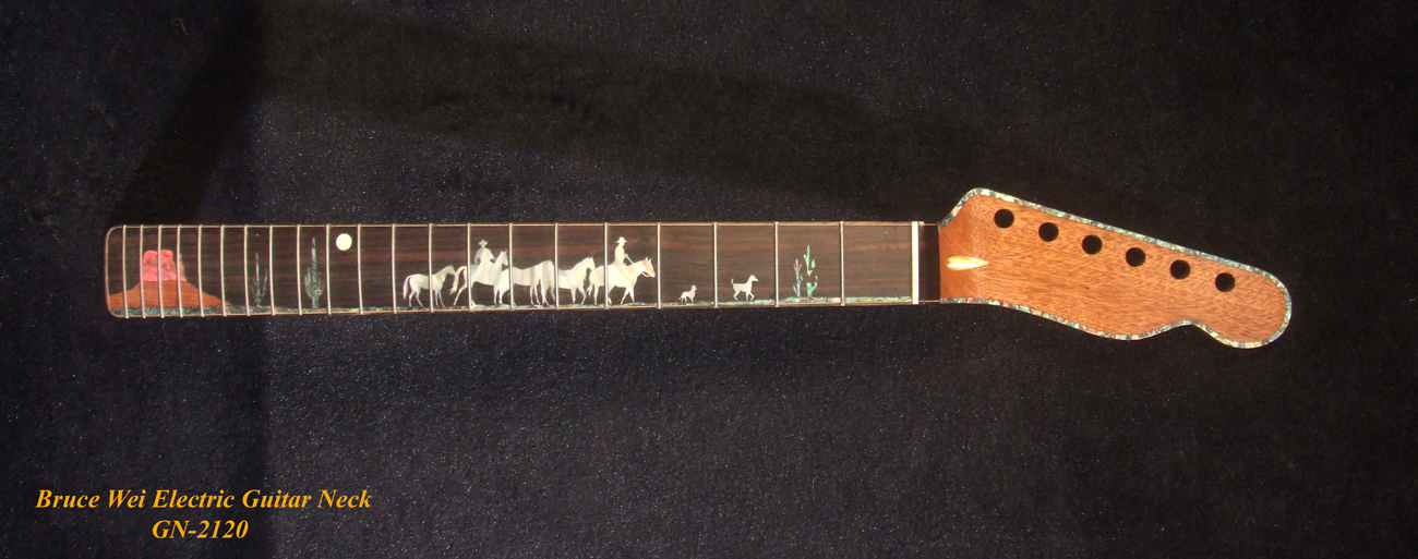 Handcrafted Electric Guitar Replacement TELE Neck, Solid Mahogany, CowBoy Inlay, Bruce Wei GN-2120