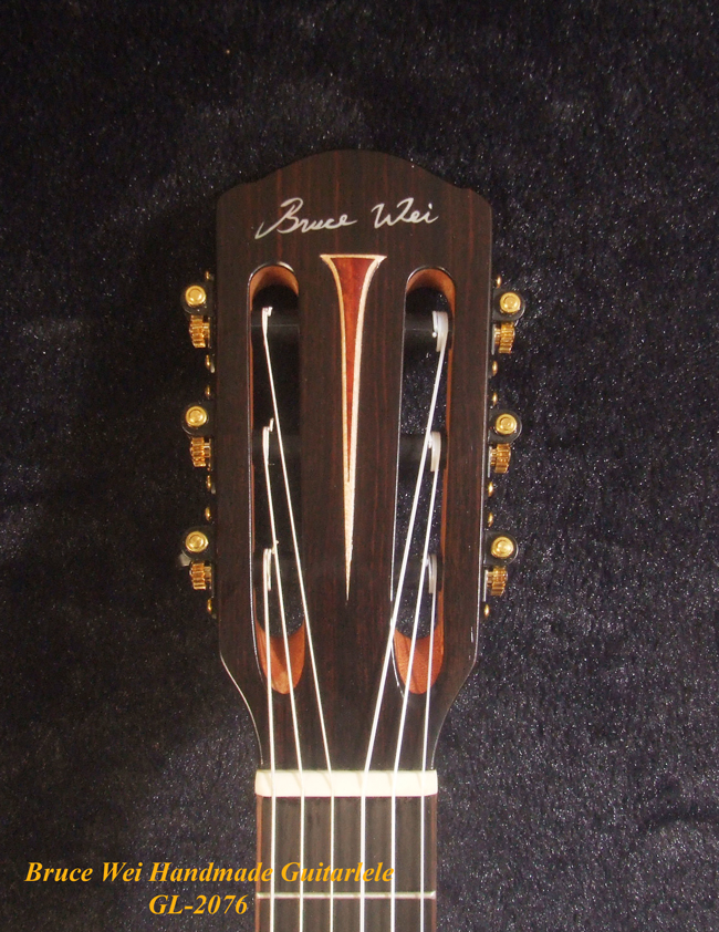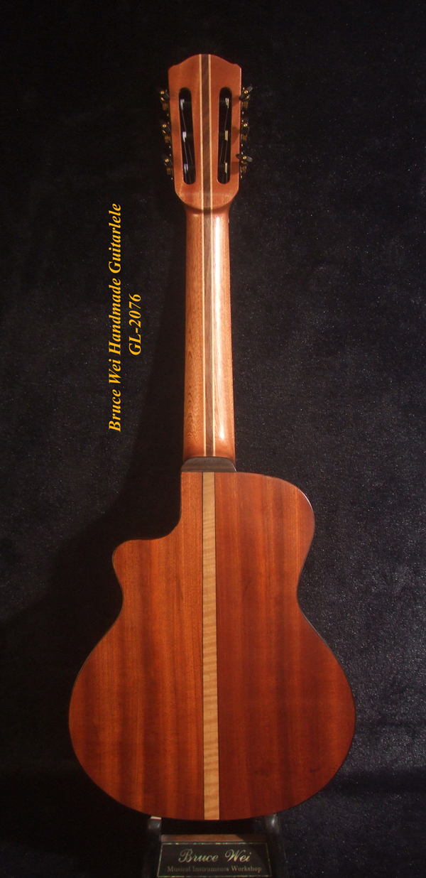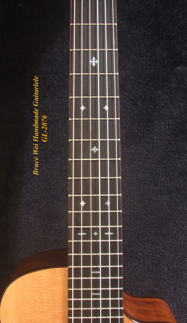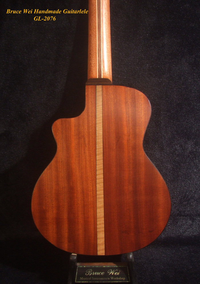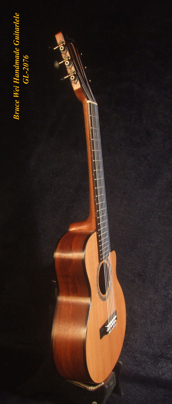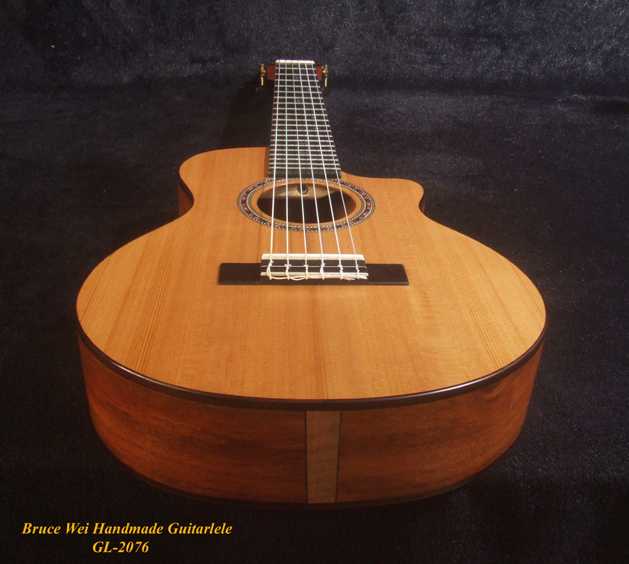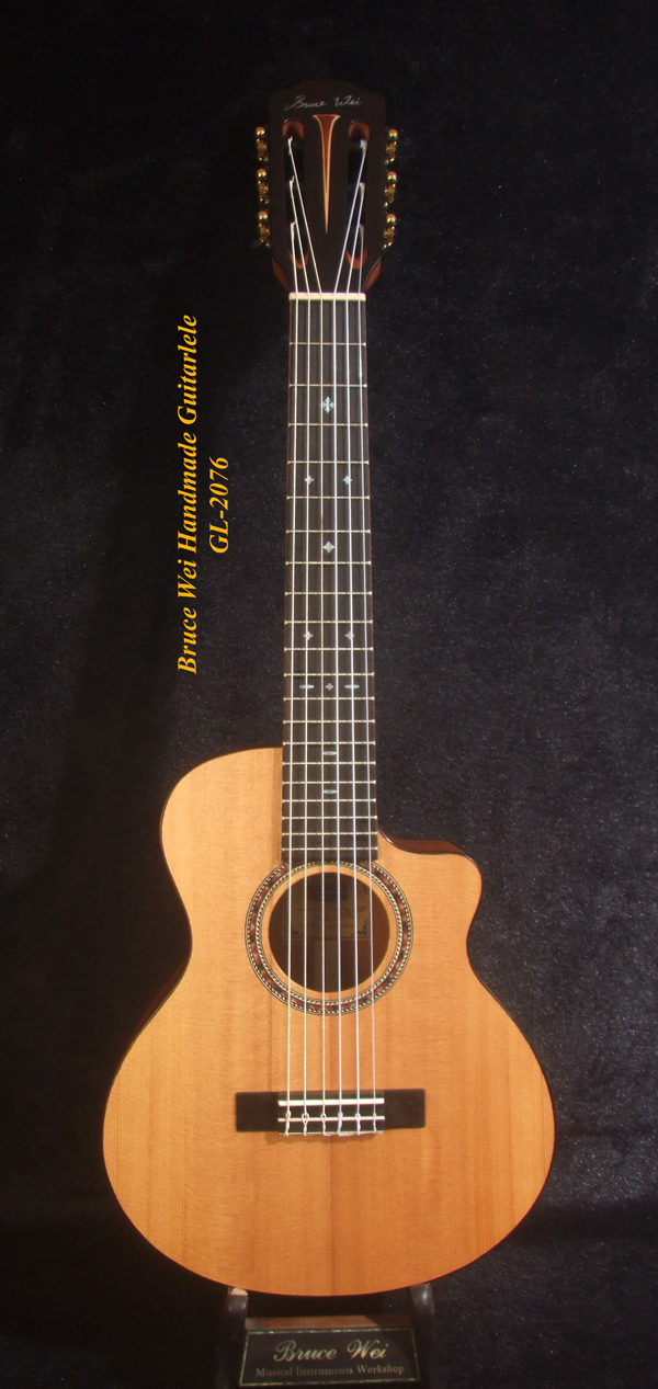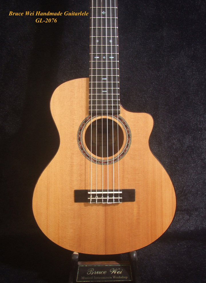Handcrafted Guitarlele, Solid Spruce & Mahogany, Slotted Head, Cutaway, MOP Inlay, Soft-bag, Bruce Wei GL-2076