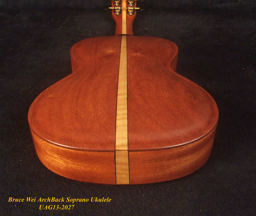 Handcrafted Soprano Ukulele Hawaiian Koa & Mahogany Archback , Floral inlay, Soundhole, Soft-bag, Bruce Wei UAG13-2027
