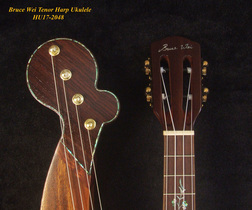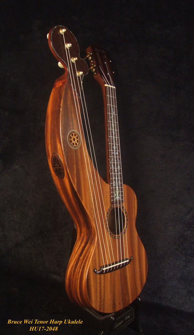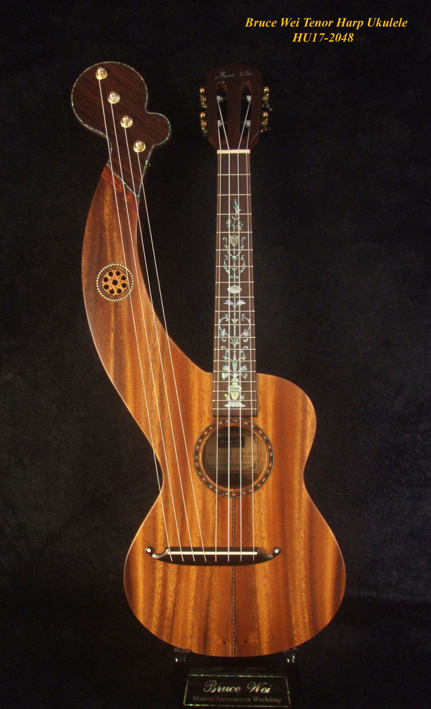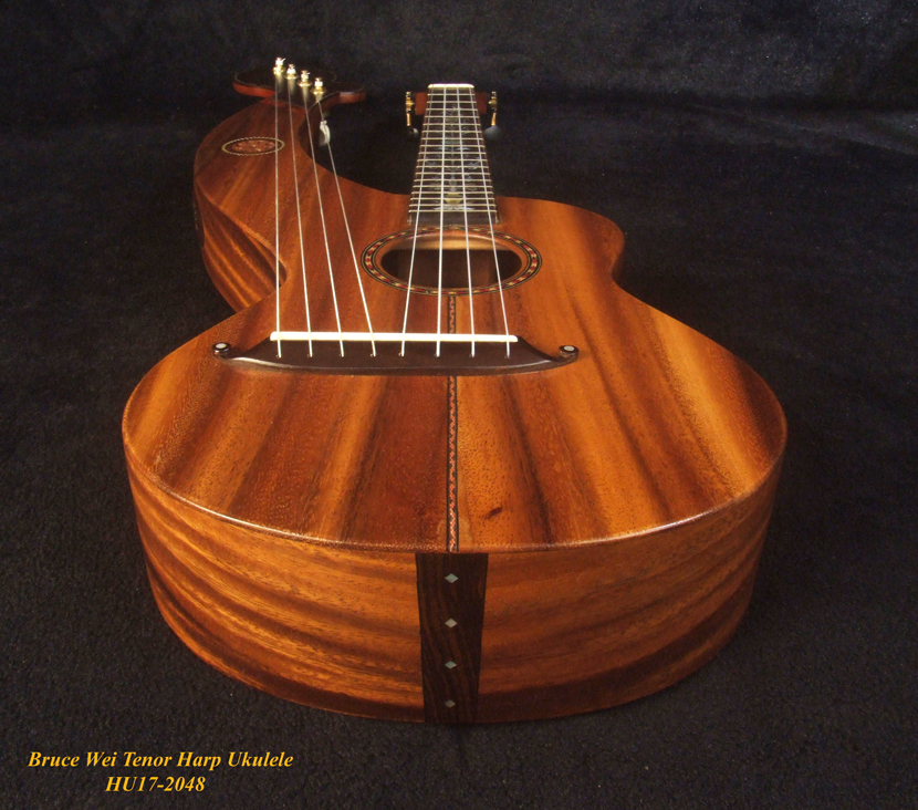 Handcrafted Tenor Harp Ukulele, Solid Acacia, Hard Case, Bruce Wei HU17-2048