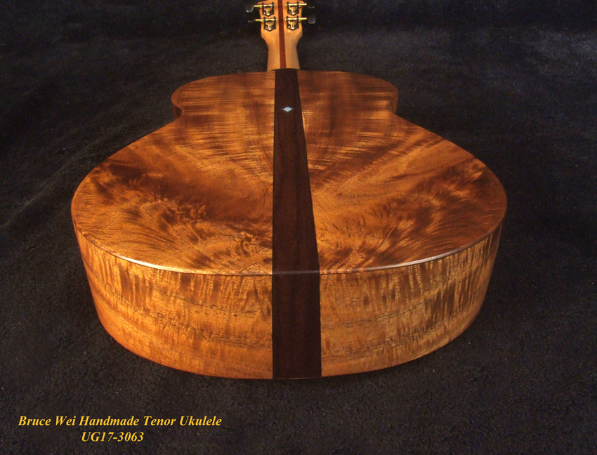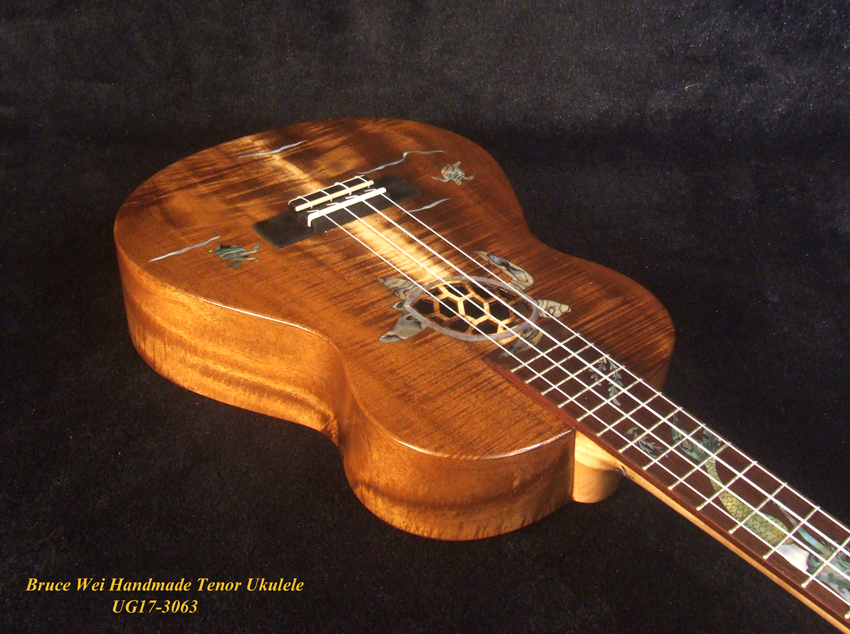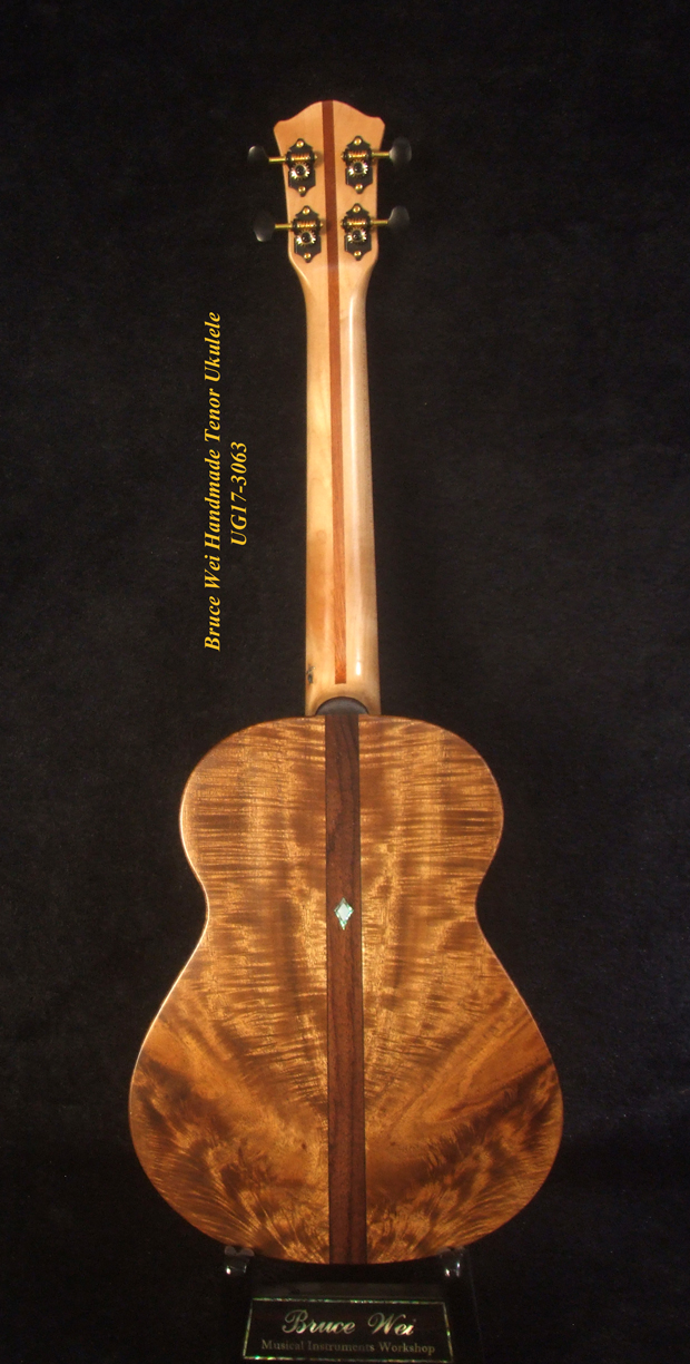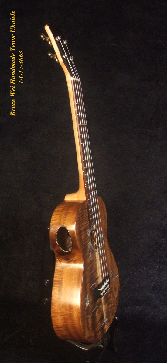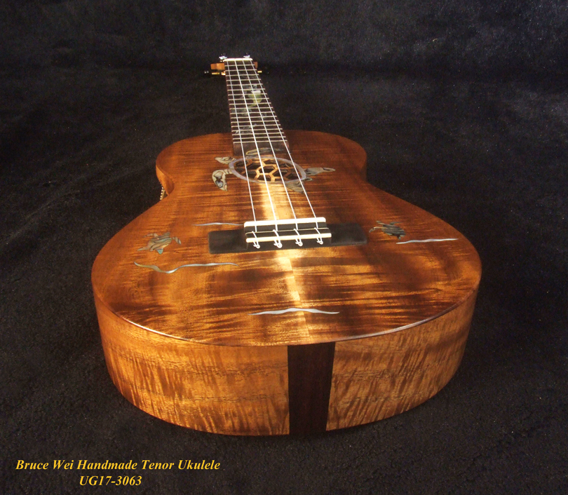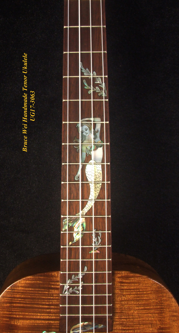 Handcrafted Tenor Ukulele, Solid Curly Acacia, Turtle Soundhole, Mermaid Inlay, Bruce Wei UG17-3063