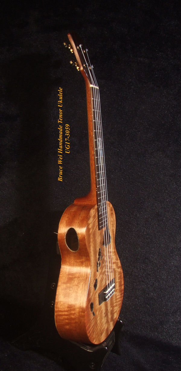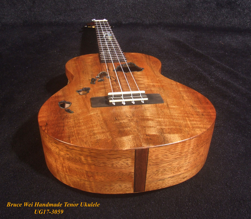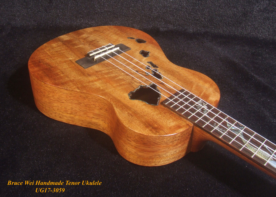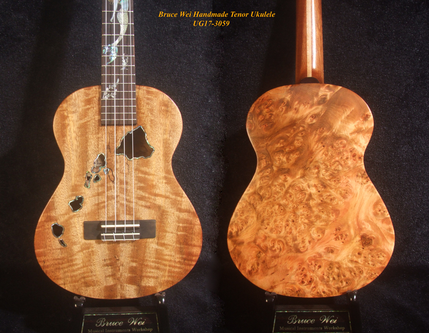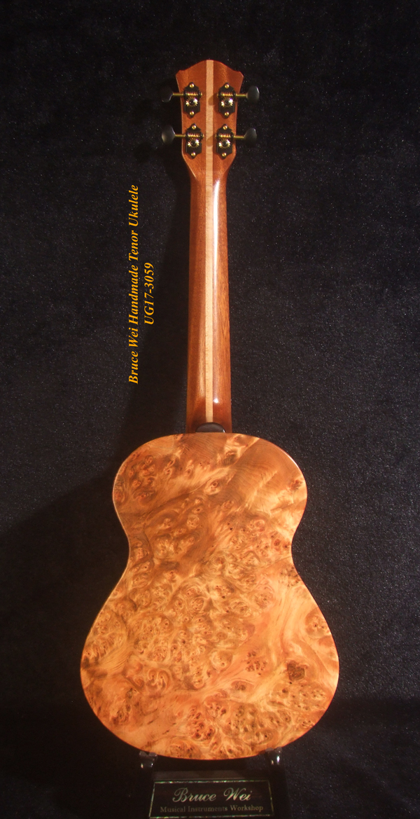 Handcrafted Tenor Ukulele, Solid Curly Mango & Burl wood, The Islands Soundhole, Bruce Wei UG17-3059
