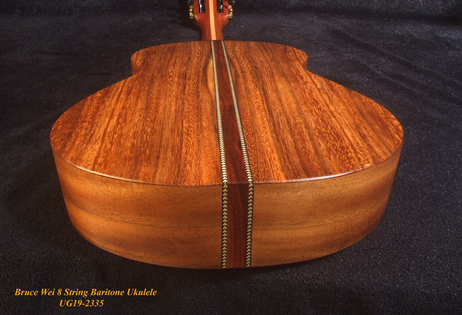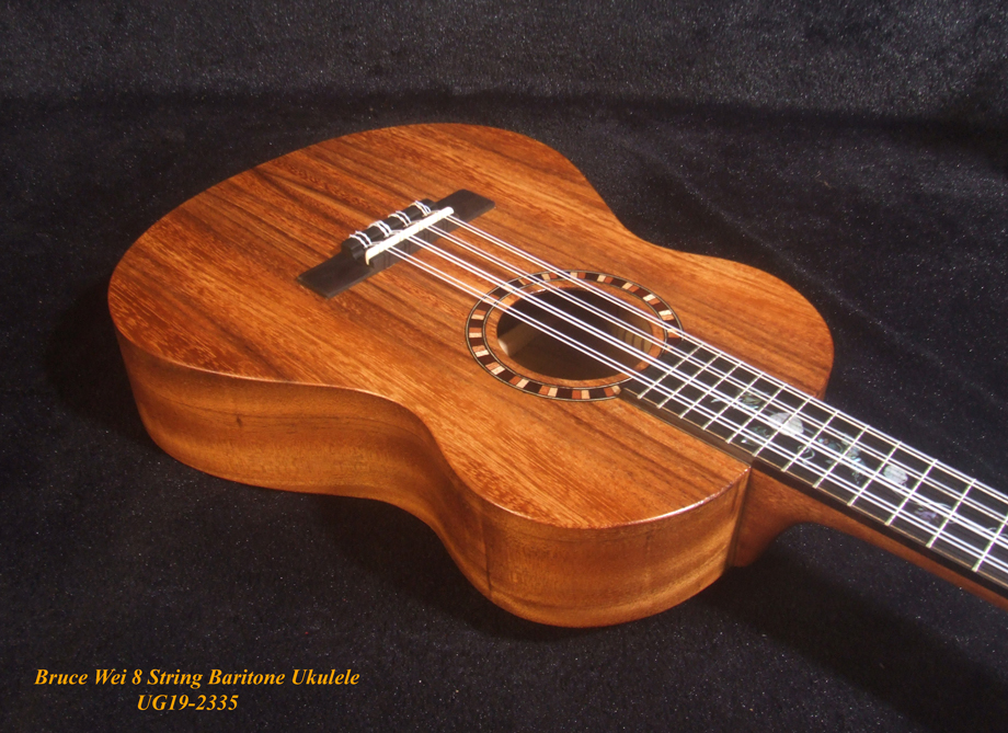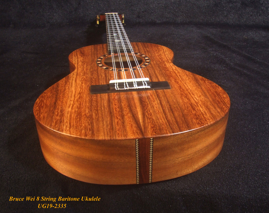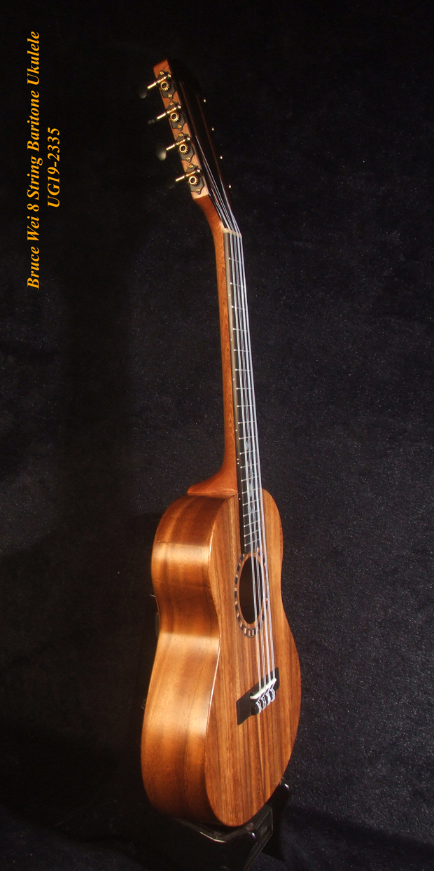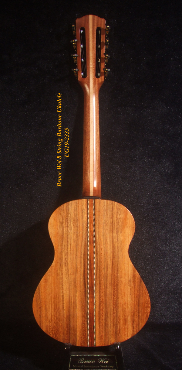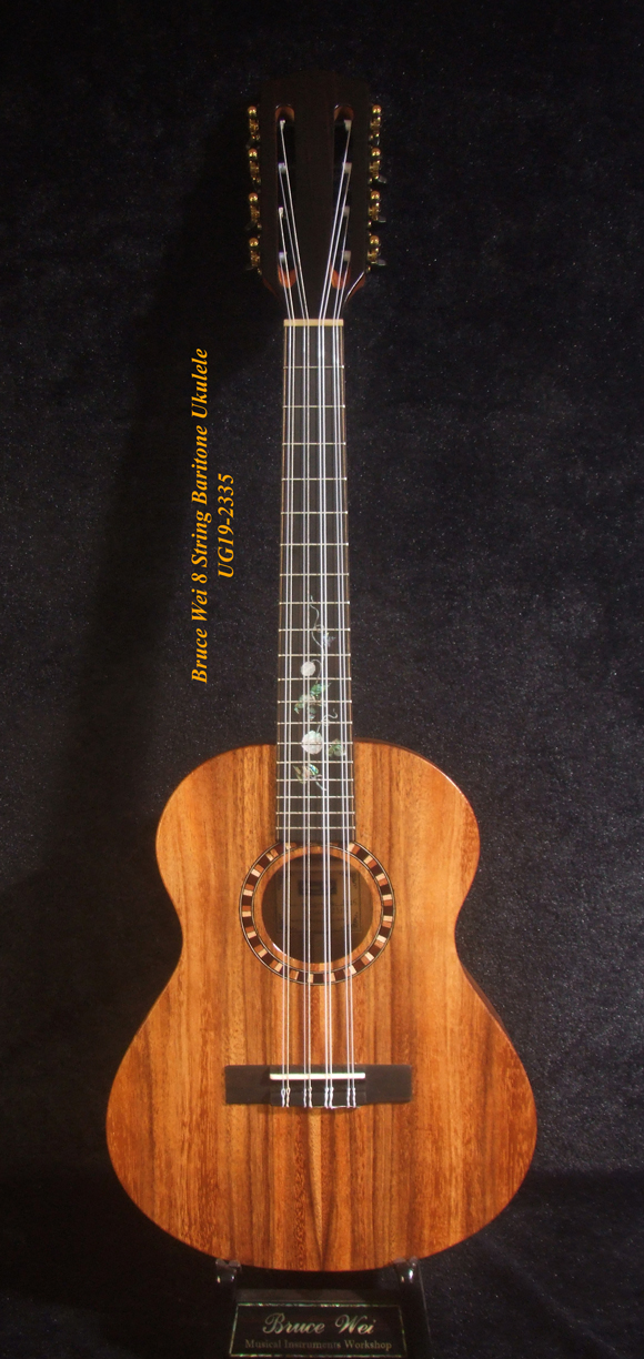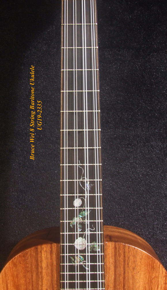 Handmade 8 String Baritone Ukulele, Solid Acacia, Slotted Head, Beer Flower inlay, Soft-bag, Bruce Wei UG19-2335