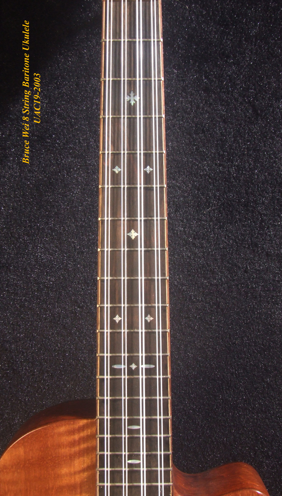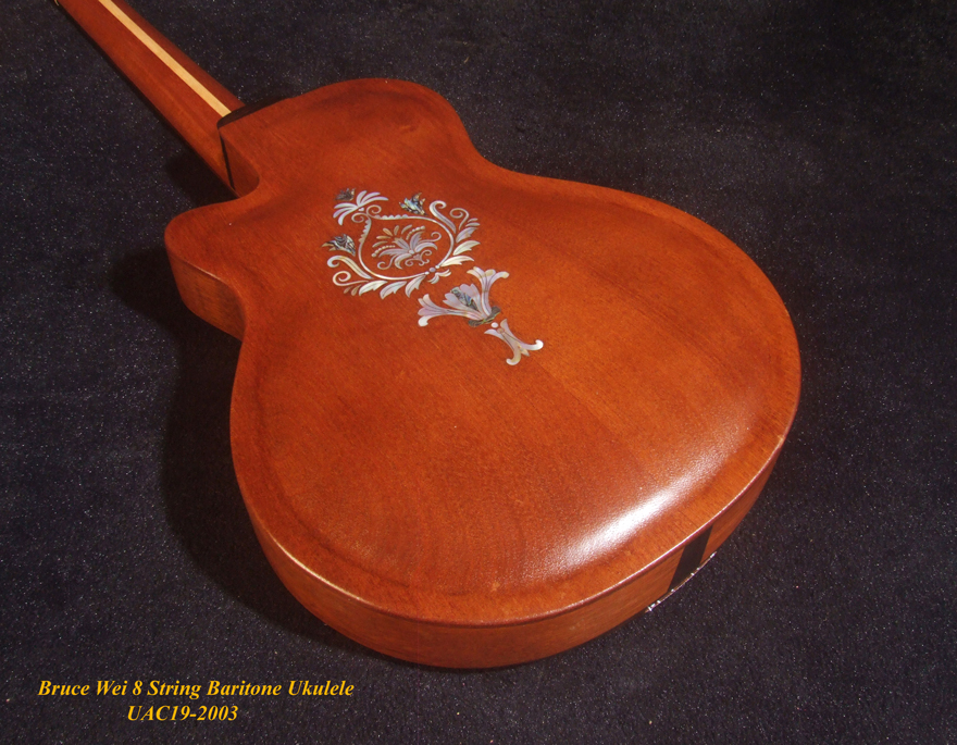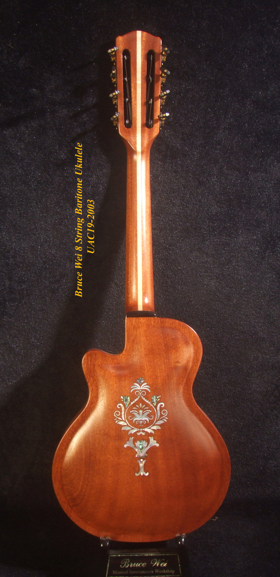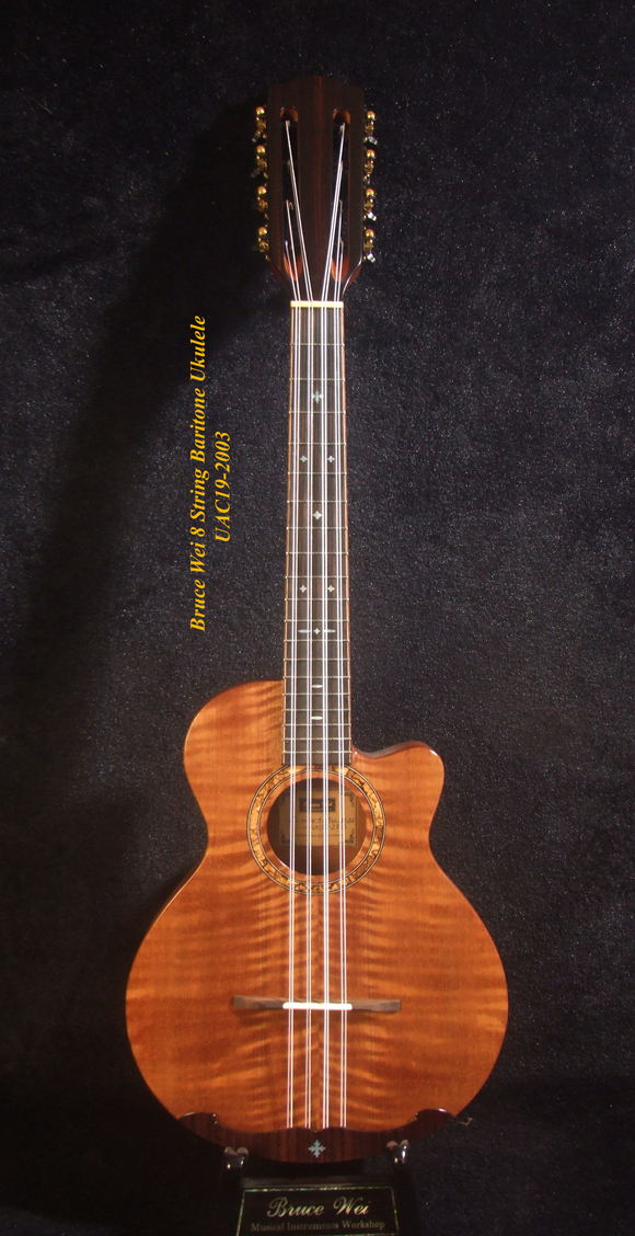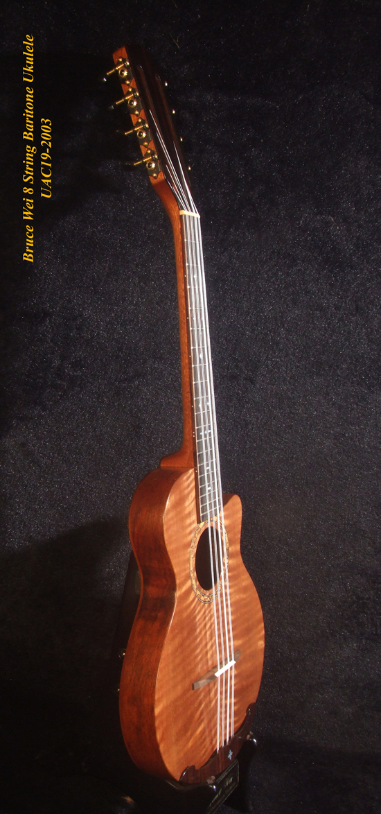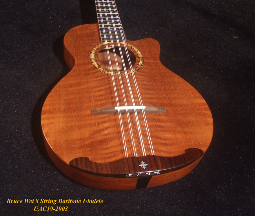 Handmade 8 String Baritone Ukulele, Solid Curly Maple, Mahogany Cutaway, Soft-bag, Bruce Wei UAC19-2003