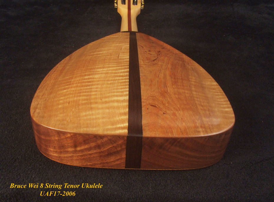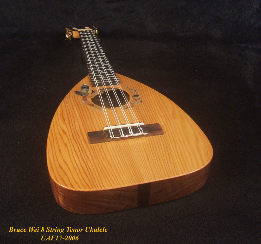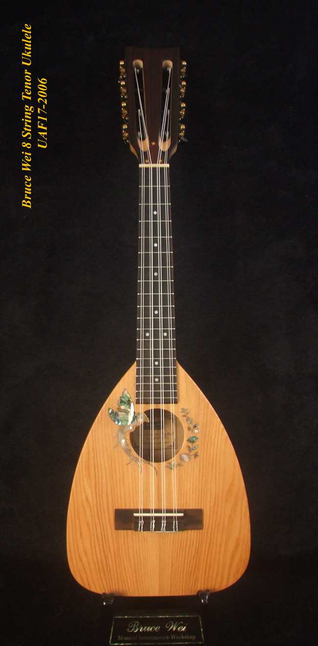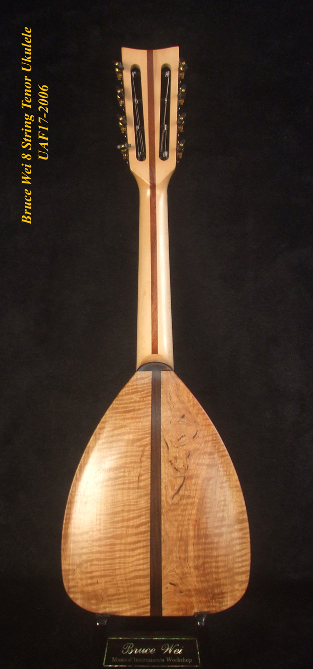 Handmade 8 StringTenor Ukulele, Solid Taiwania, Curly Maple Arch-Back, Bird Floral soundhole, Slotted Head, Soft-bag, Bruce Wei UAF17-2006