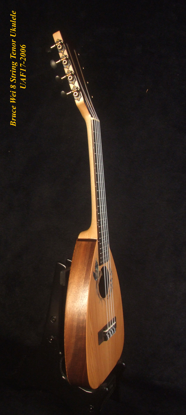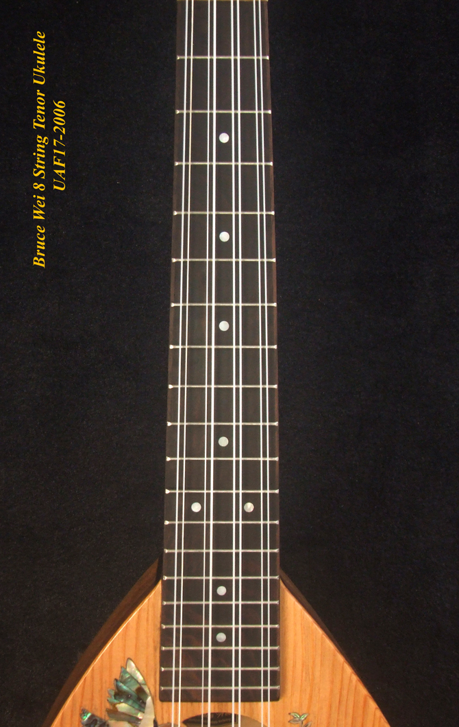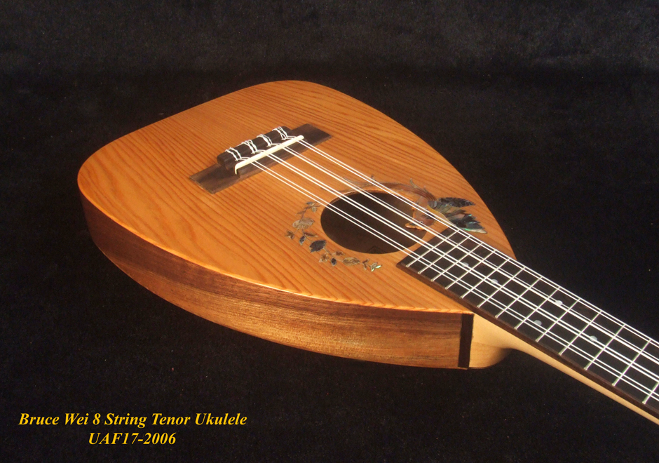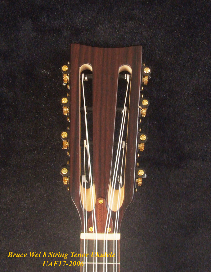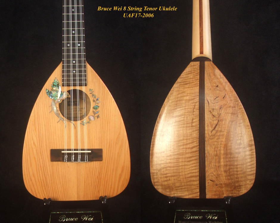 Handmade 8 StringTenor Ukulele, Solid Taiwania, Curly Maple Arch-Back, Bird Floral soundhole, Slotted Head, Soft-bag, Bruce Wei UAF17-2006