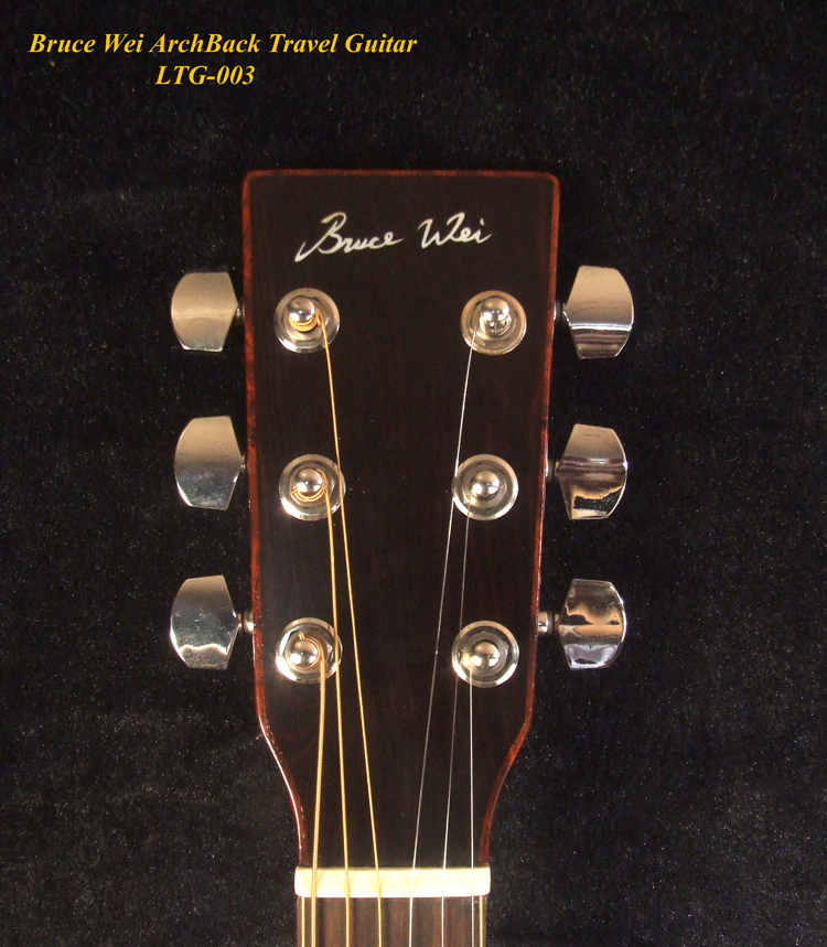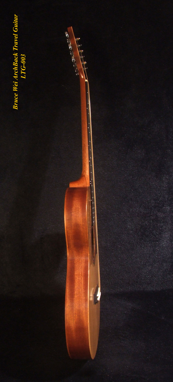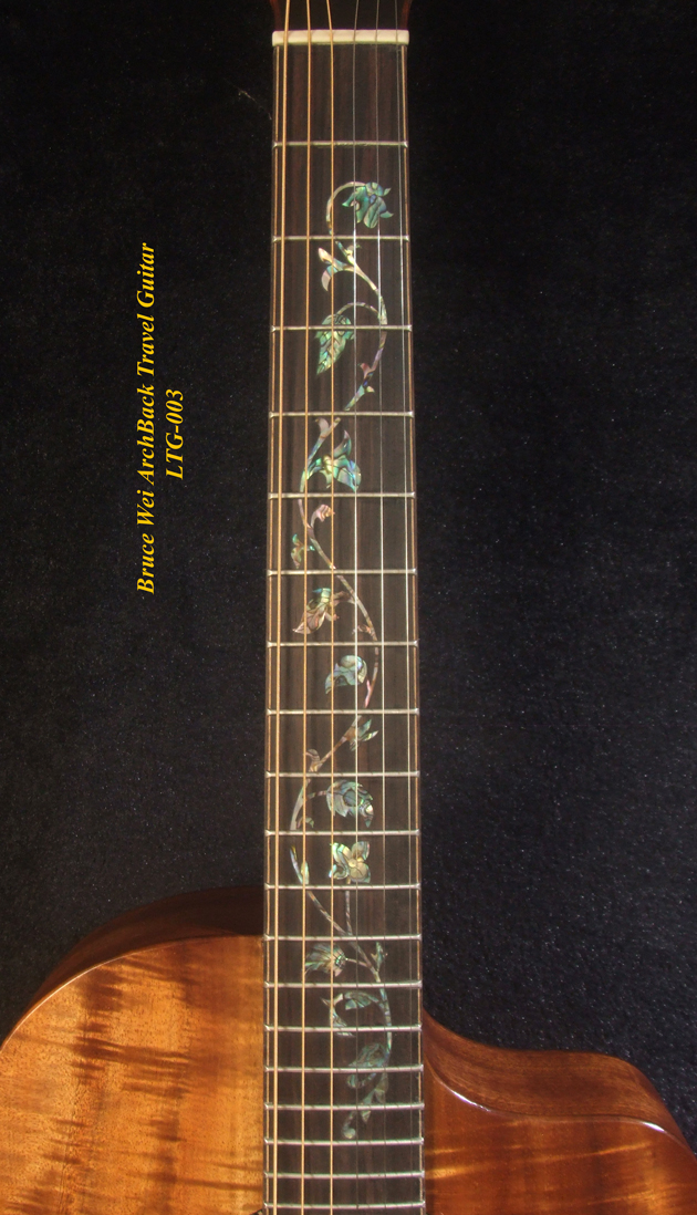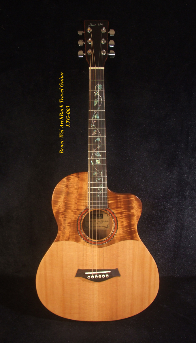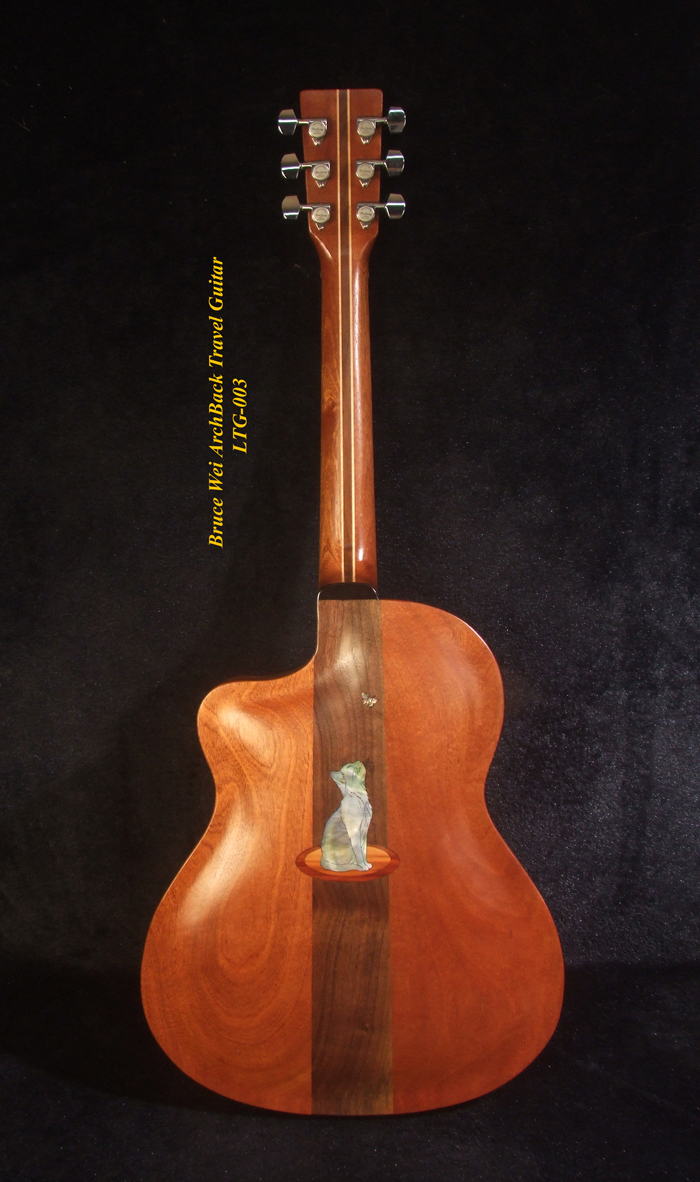 Handmade ArchBack Travel Guitar Solid Spruce, Mahogany, Cutaway, Cat, Vine Inlay, Soft-bag Bruce Wei LTG-003