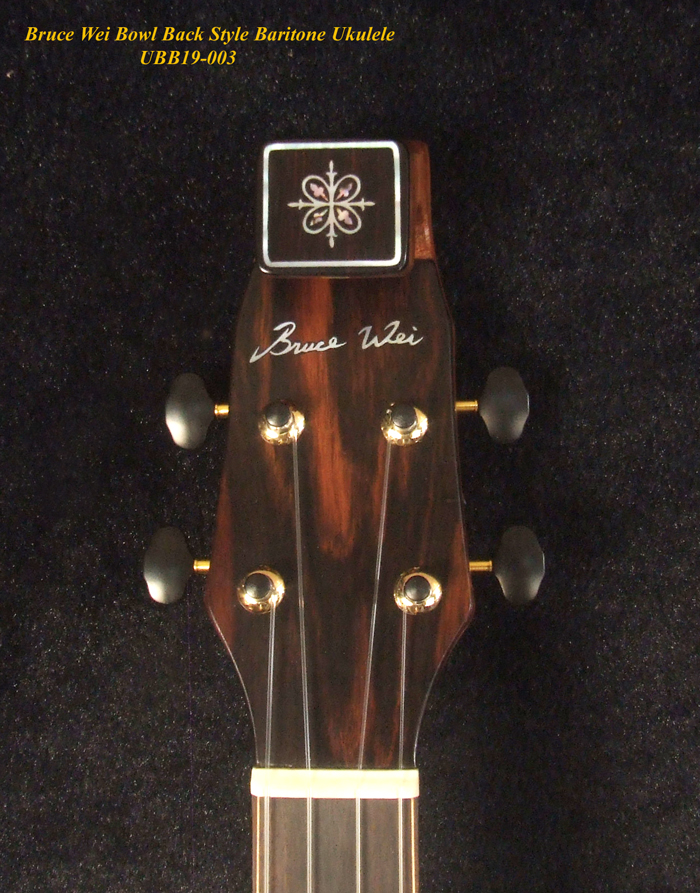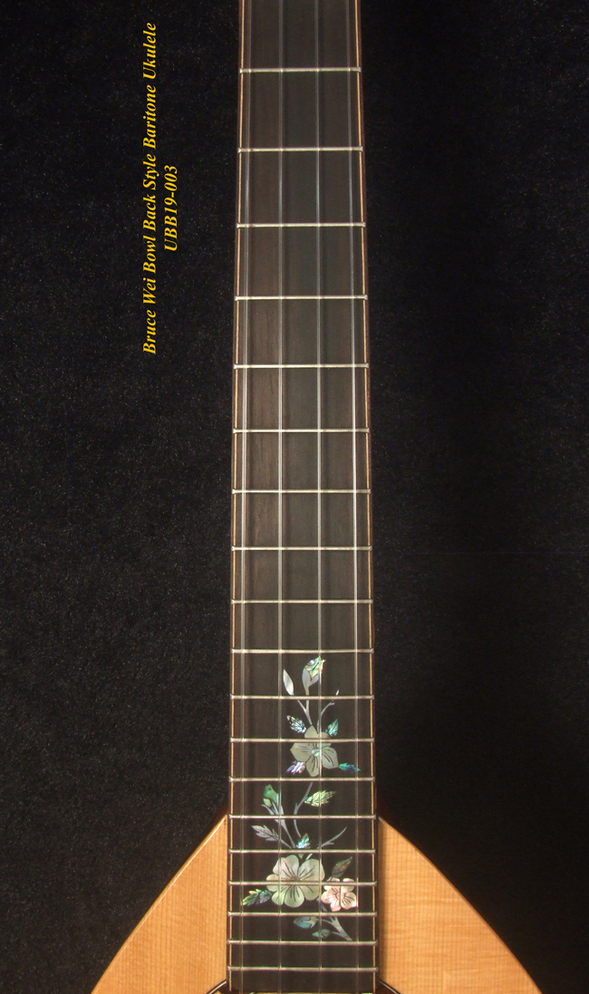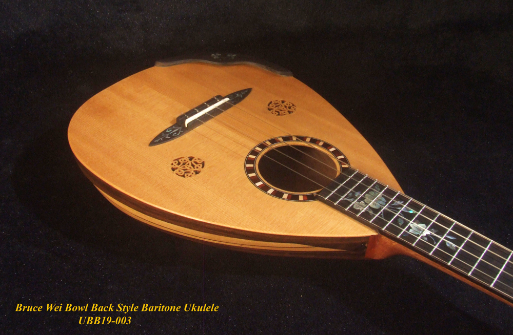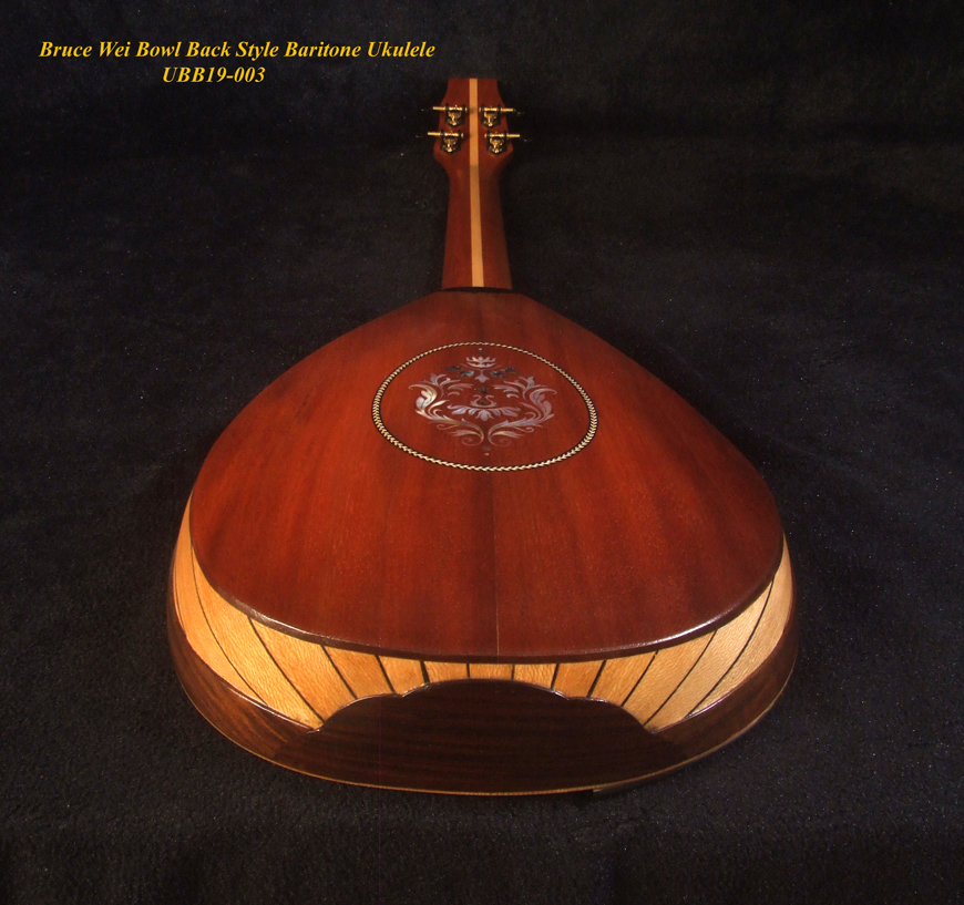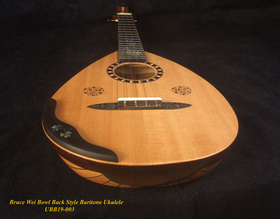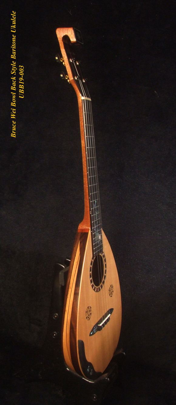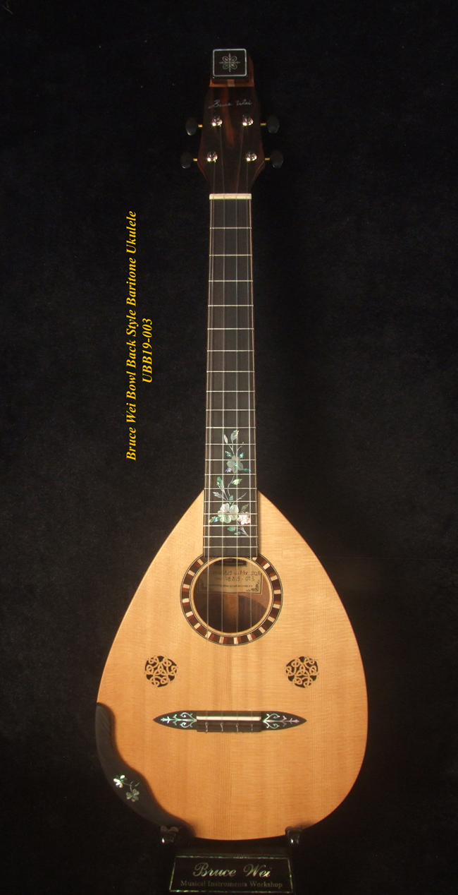 Handmade Baritone Ukulele, Curved Head, Solid Spruce, Mahogany, Archback, Classic Pattern Inlay, Soft-bag Bruce Wei UBB19-003