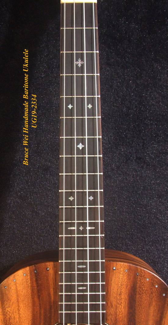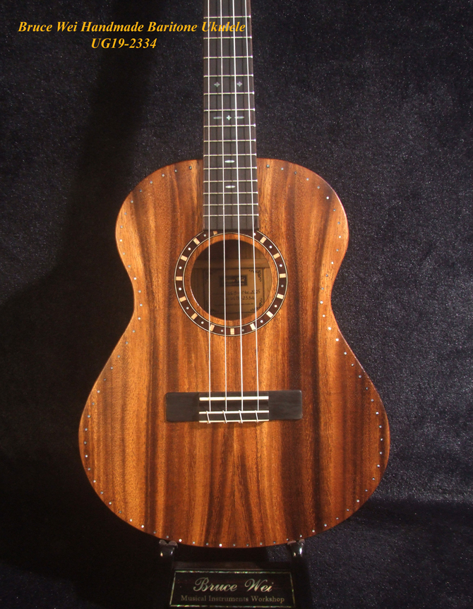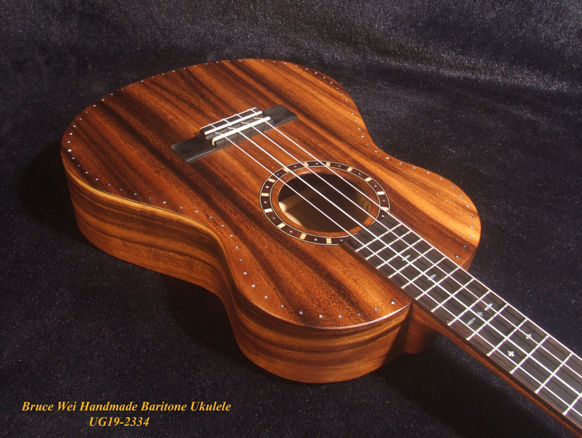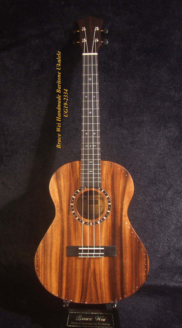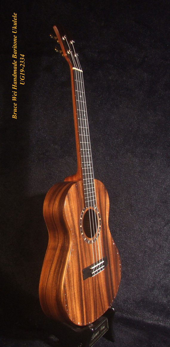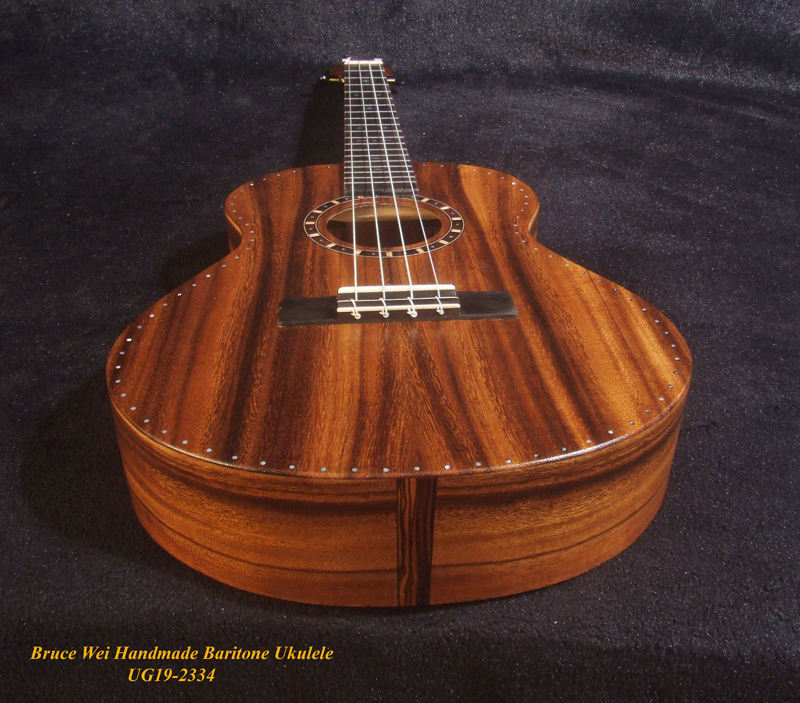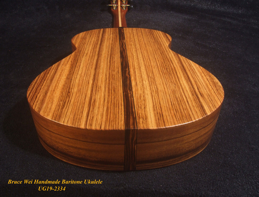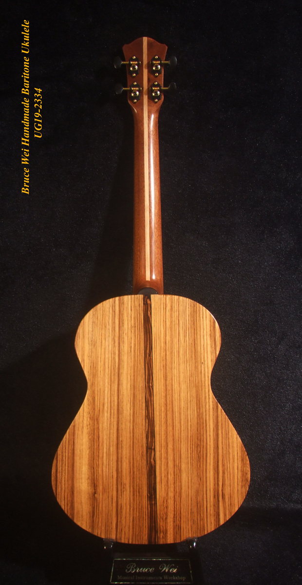 Handmade Baritone Ukulele, Solid Acacia, Zebra wood, 4 String, MOP Inlay, Soft-bag Bruce Wei UG19-2334