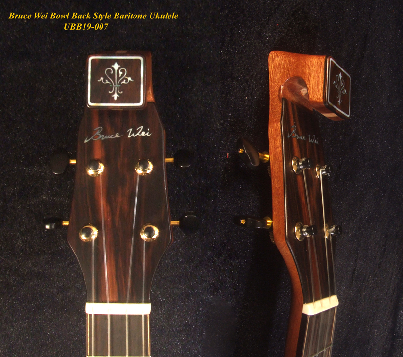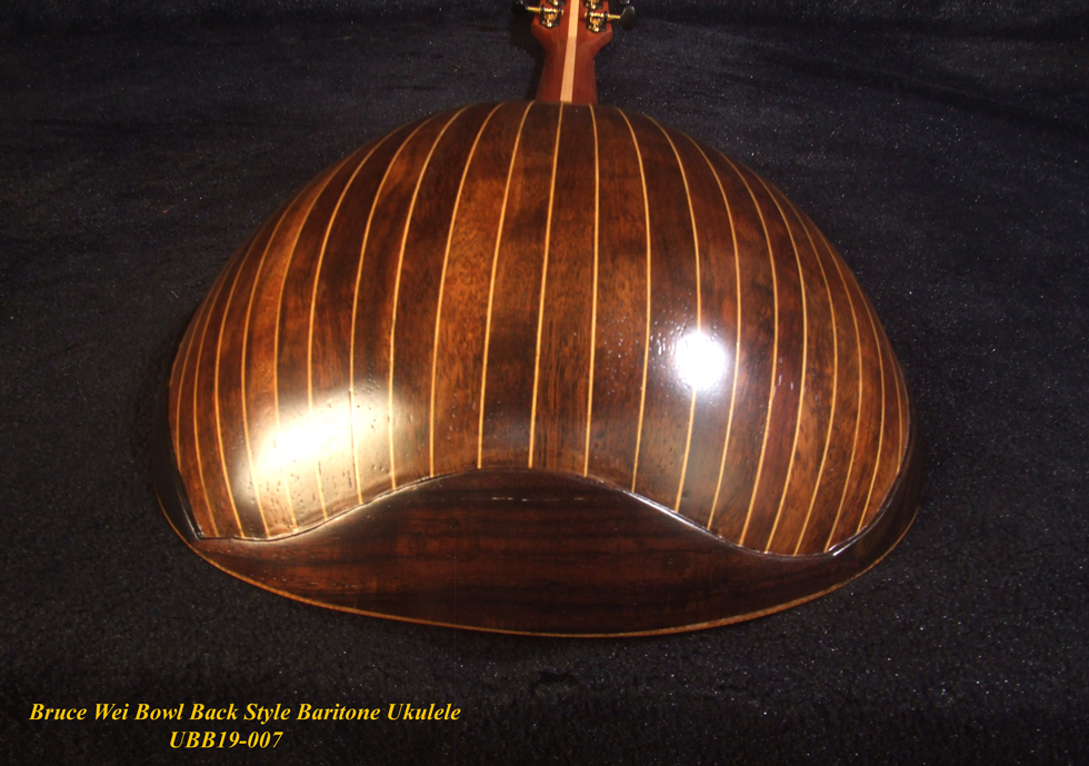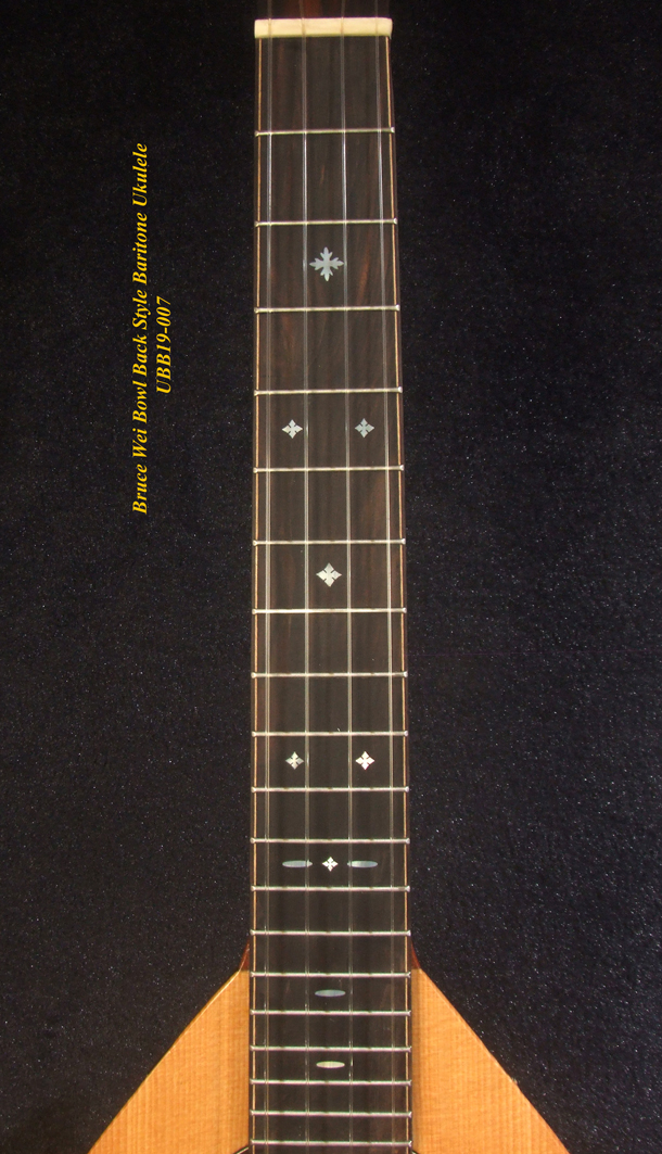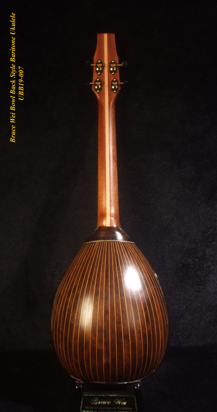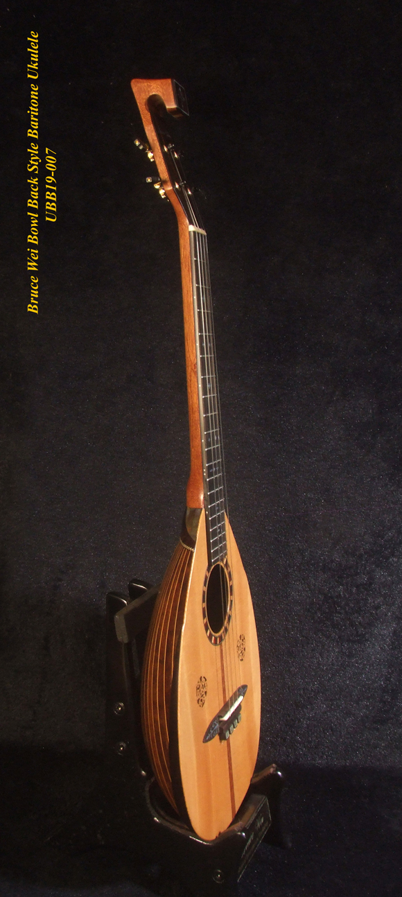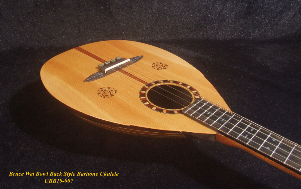 Handmade Bowl Back Style Baritone Ukulele, Curved Head, Solid Spruce, Classic Pattern MOP Inlay, Soft-bag Bruce Wei UBB19-007
