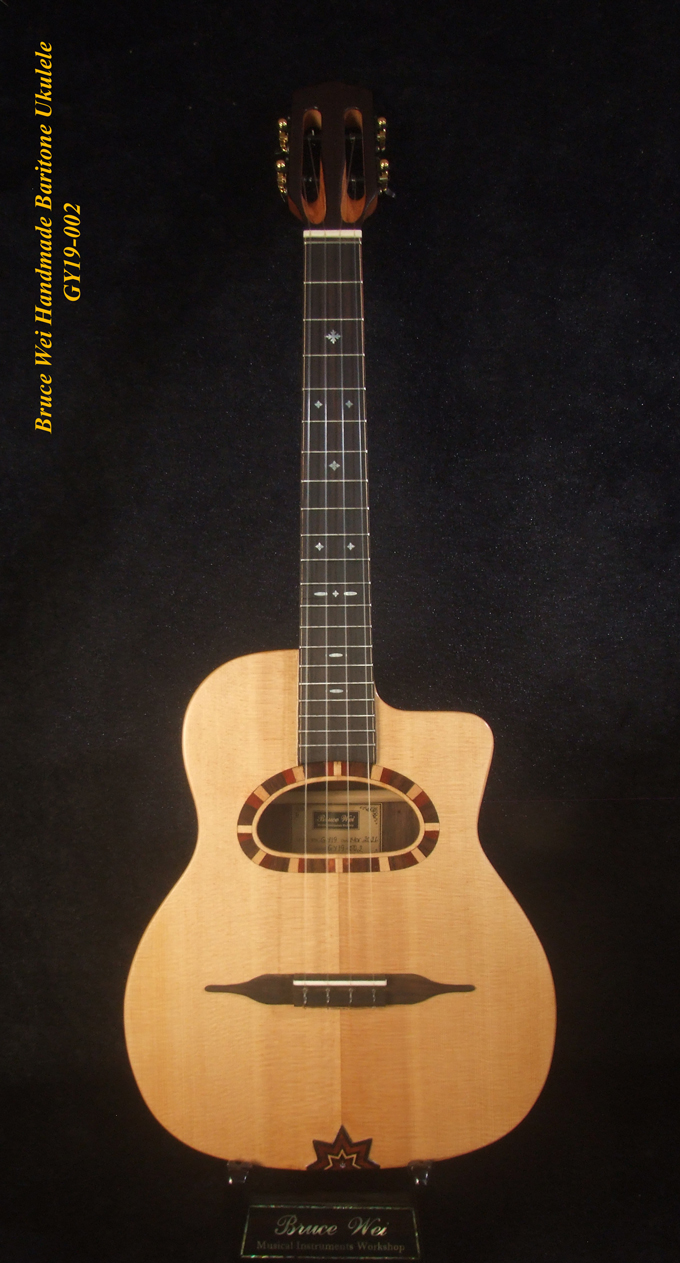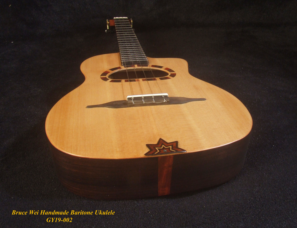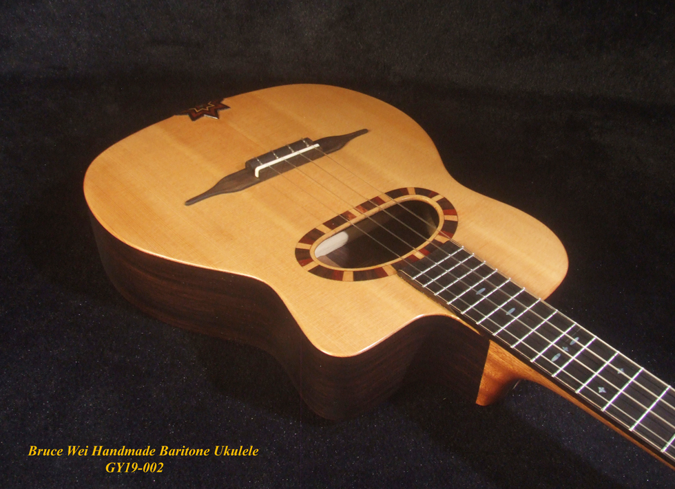 Handmade Gypsy Baritone Ukulele, Solid Spruce & Indian Rosewood, Slotted Head, Bruce Wei GY19-002